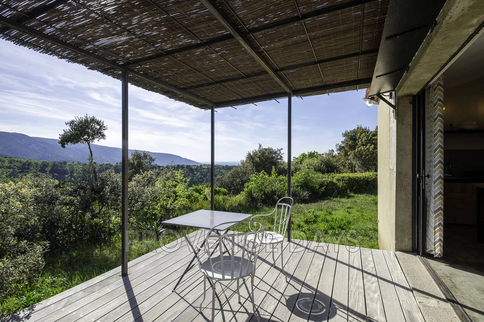 The terrace wraps around the view side of the house including the bedroom and a small private pool and sunbathing terrace.