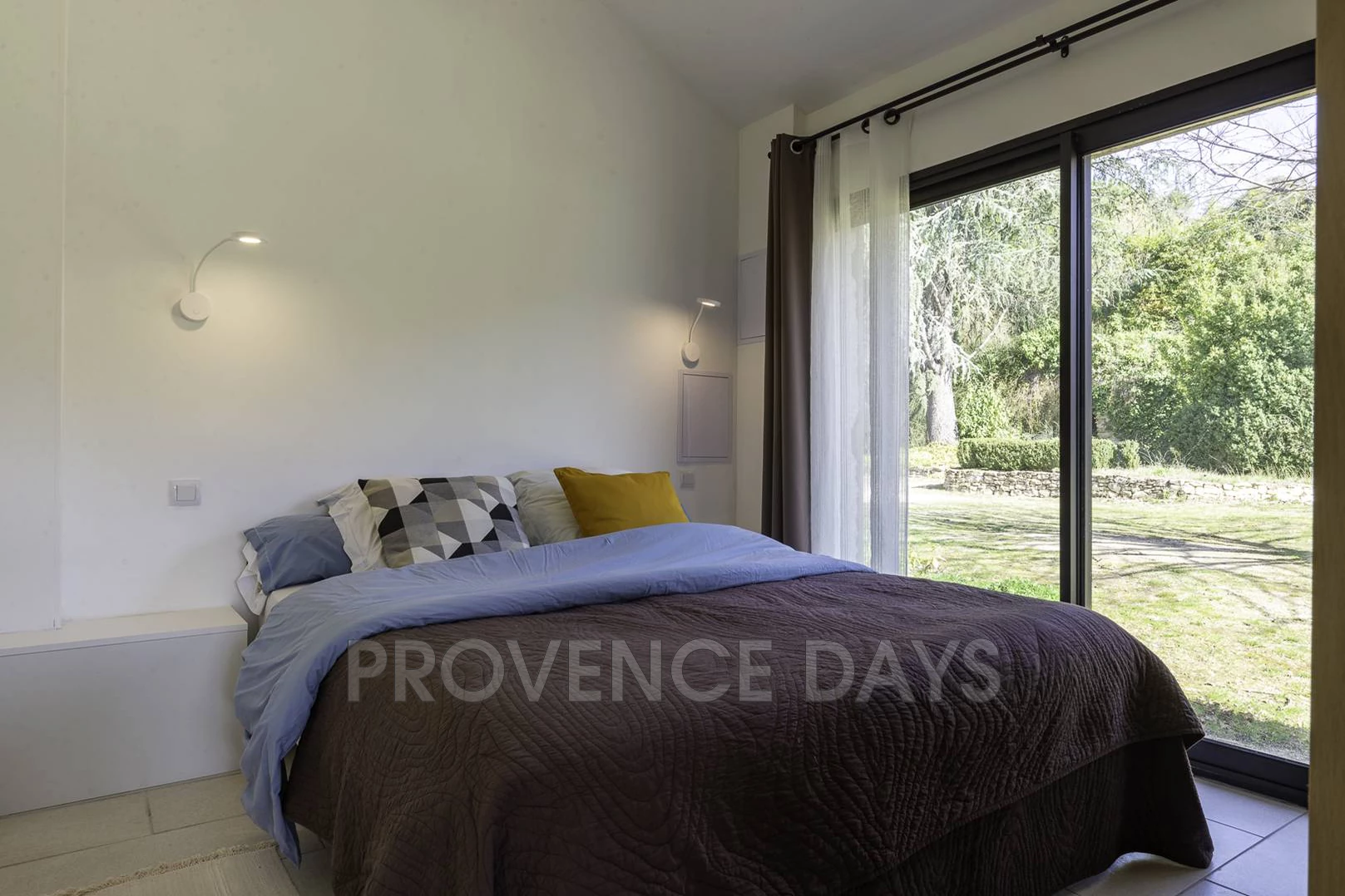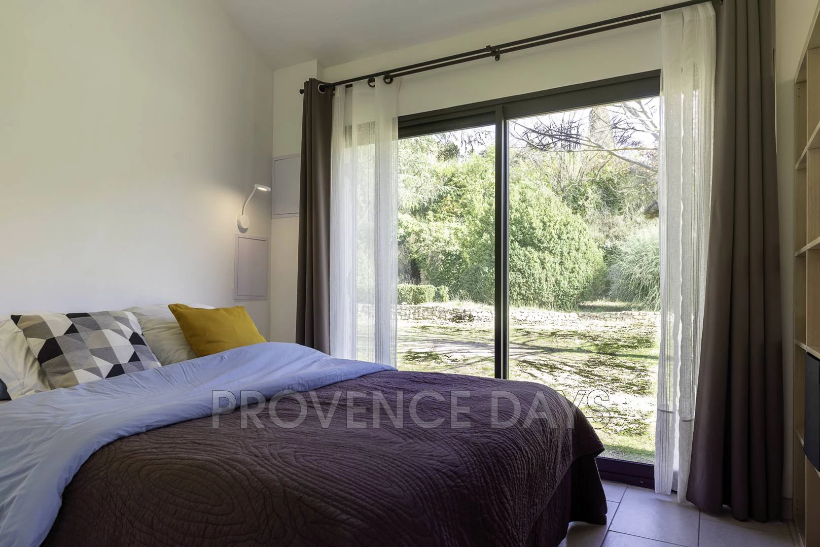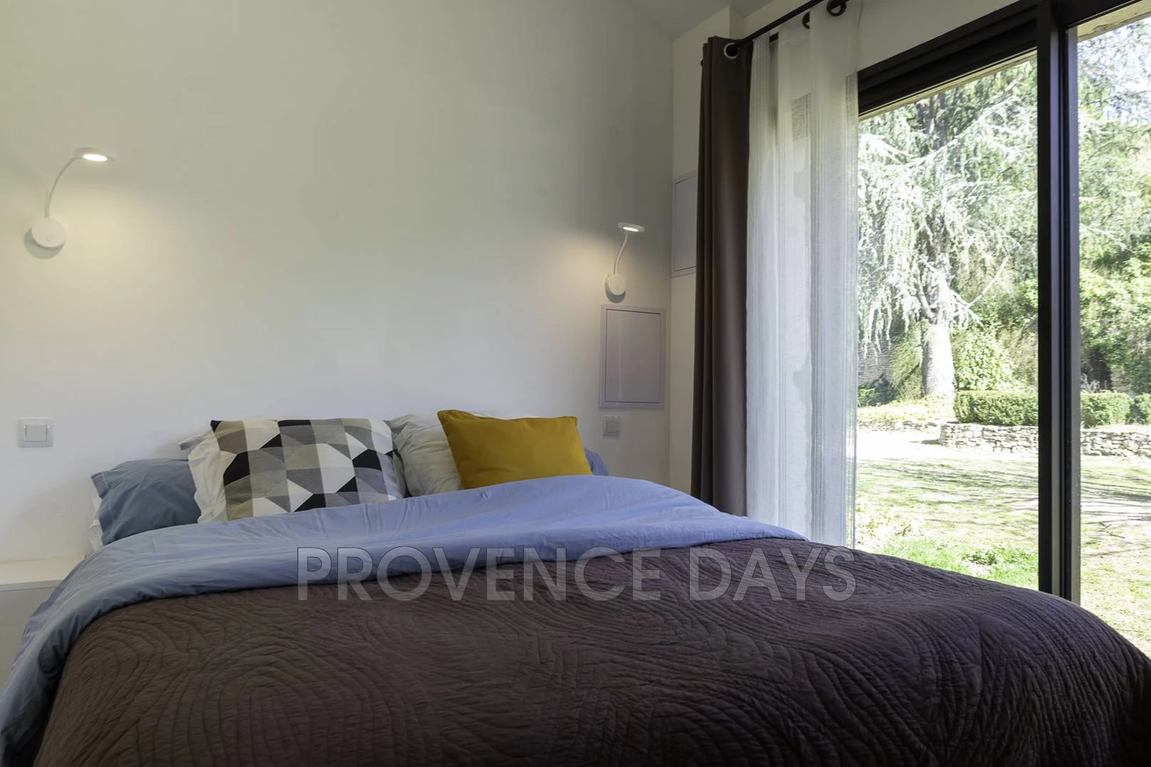 It is located in the heart of a 1.4 hectare estate, surrounded by a large garden and fields of fruit and olive trees. A true haven of peace, the property is located on the edge of the village of Oppède, accessible by foot in 10 minutes.