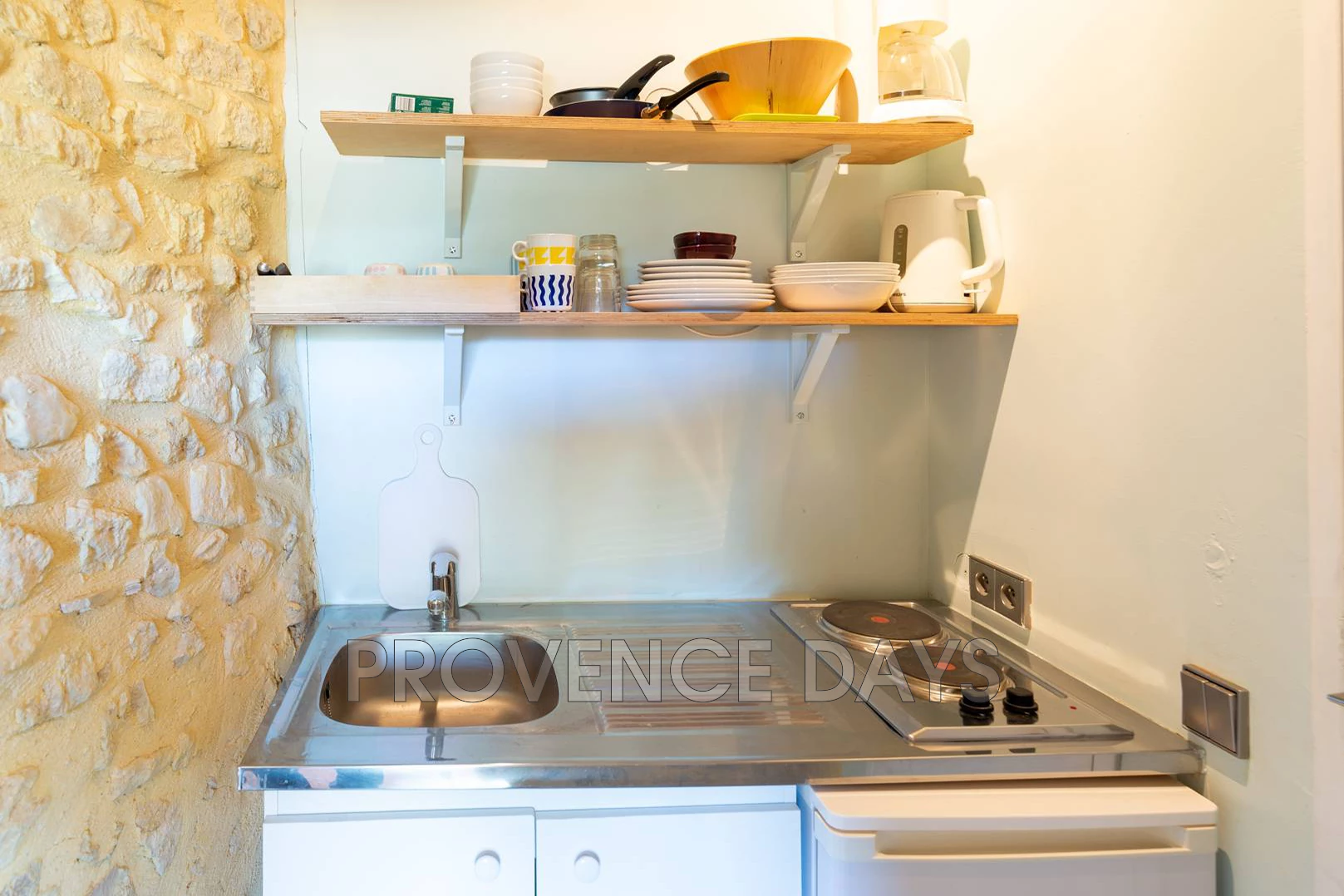 - Behind the main open-plan space there is a kitchen, ideal for cooking for two, there are 2 hobs, a sink, fridge, toaster, and a Nespresso machine.