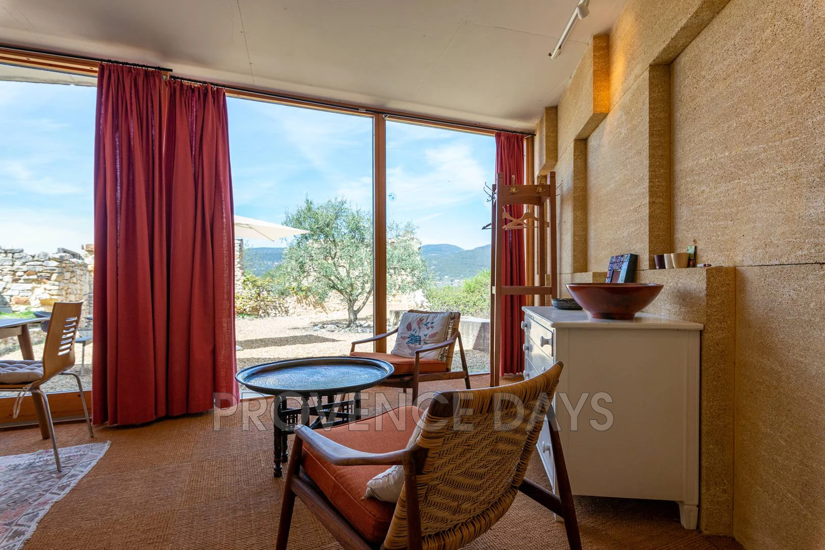 - A comfortable seating area for relaxing and looking out to the courtyard and glimpses of the views beyond