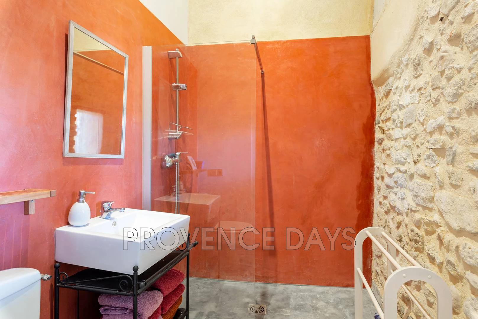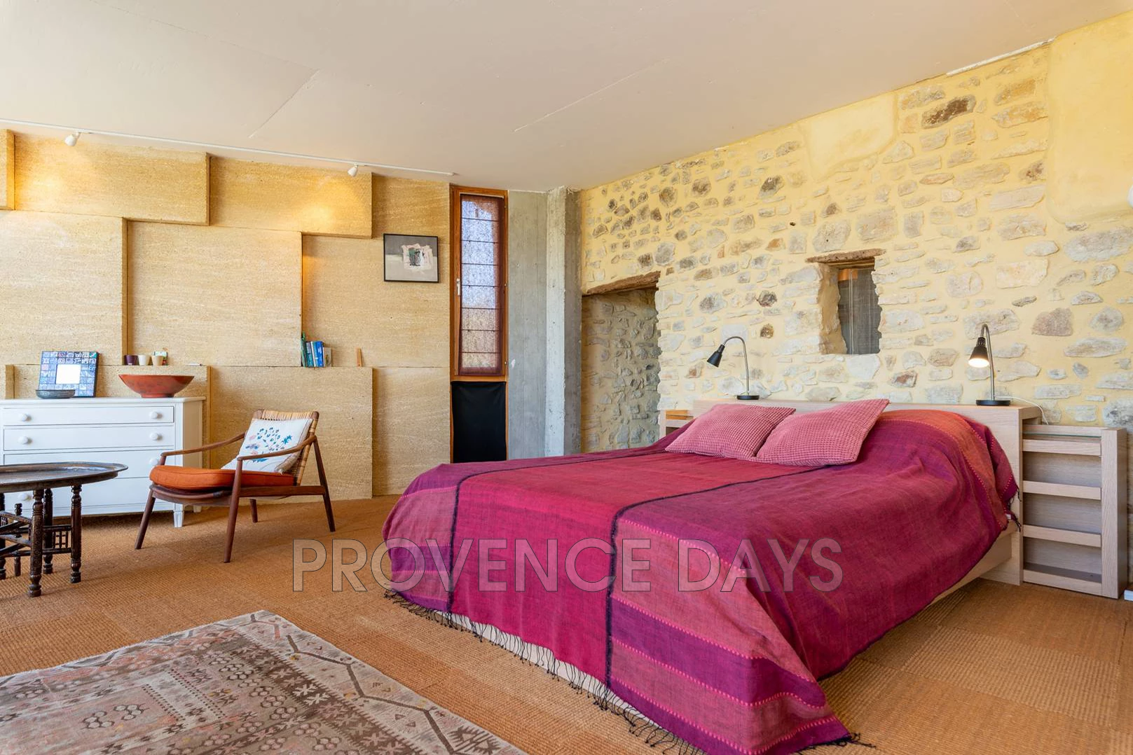 The la Cachette (the hideaway) is a beautifully styled open plan space with unusual arcithectual details. This modern interior has been cleverly crafted from the shell of a ruined farmhouse with stones from the region (pierres de gards) which it wears almost like a disguise so not to spoil the natural setting.