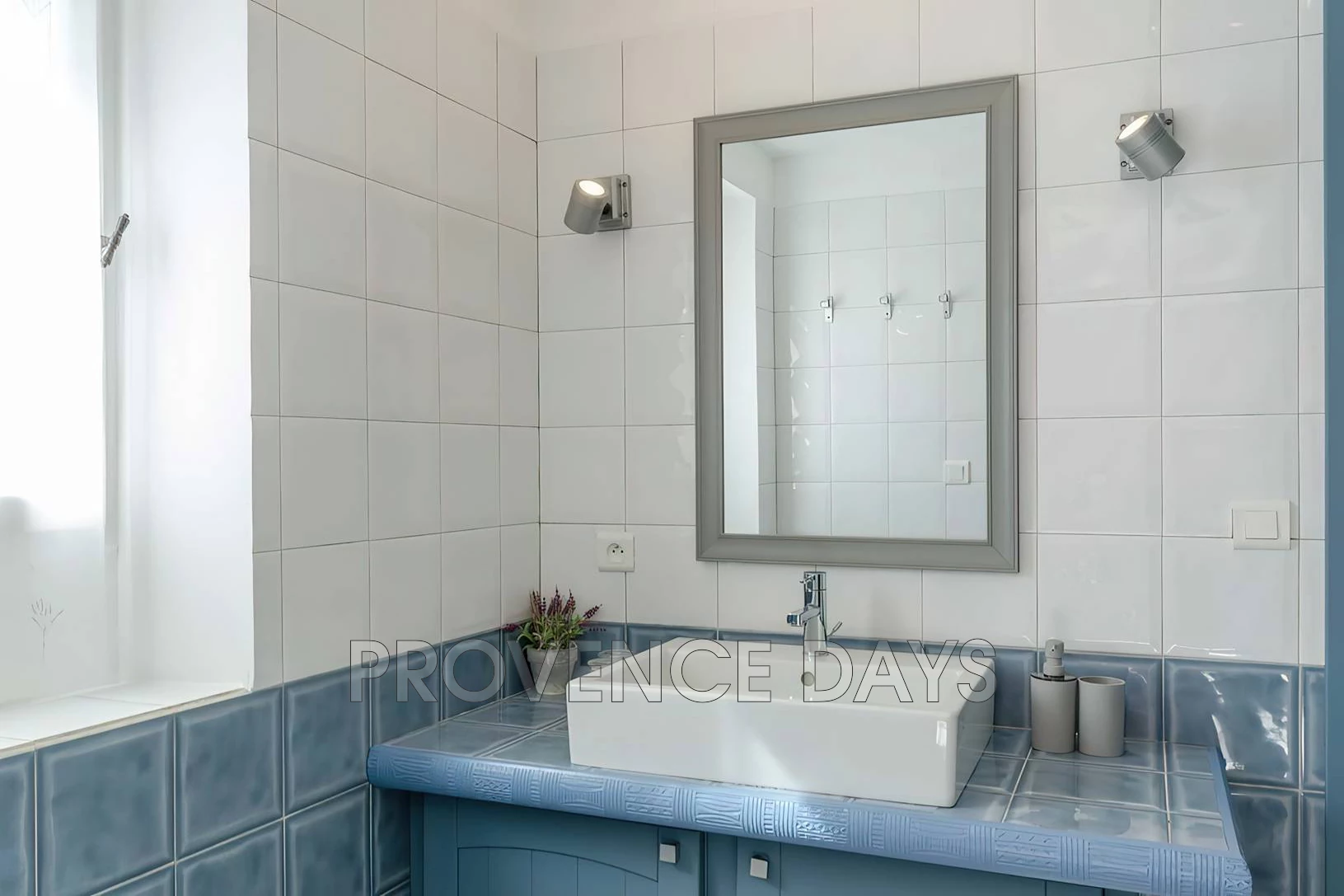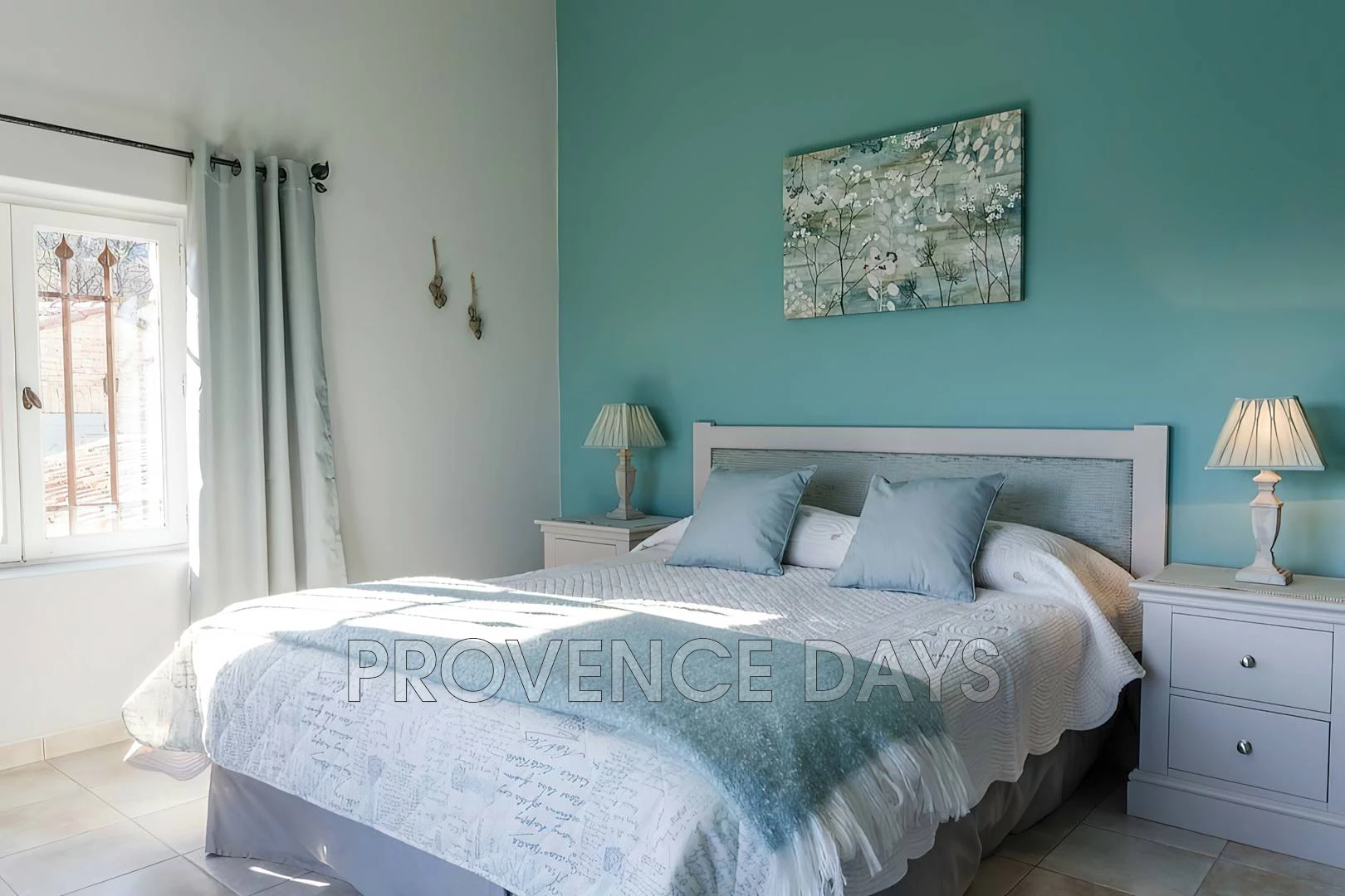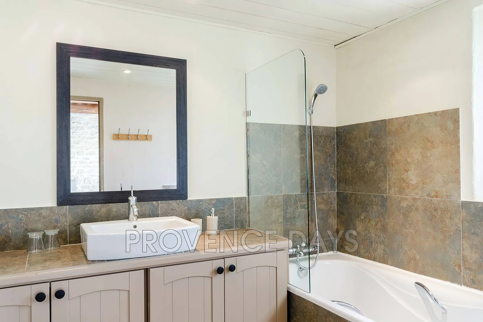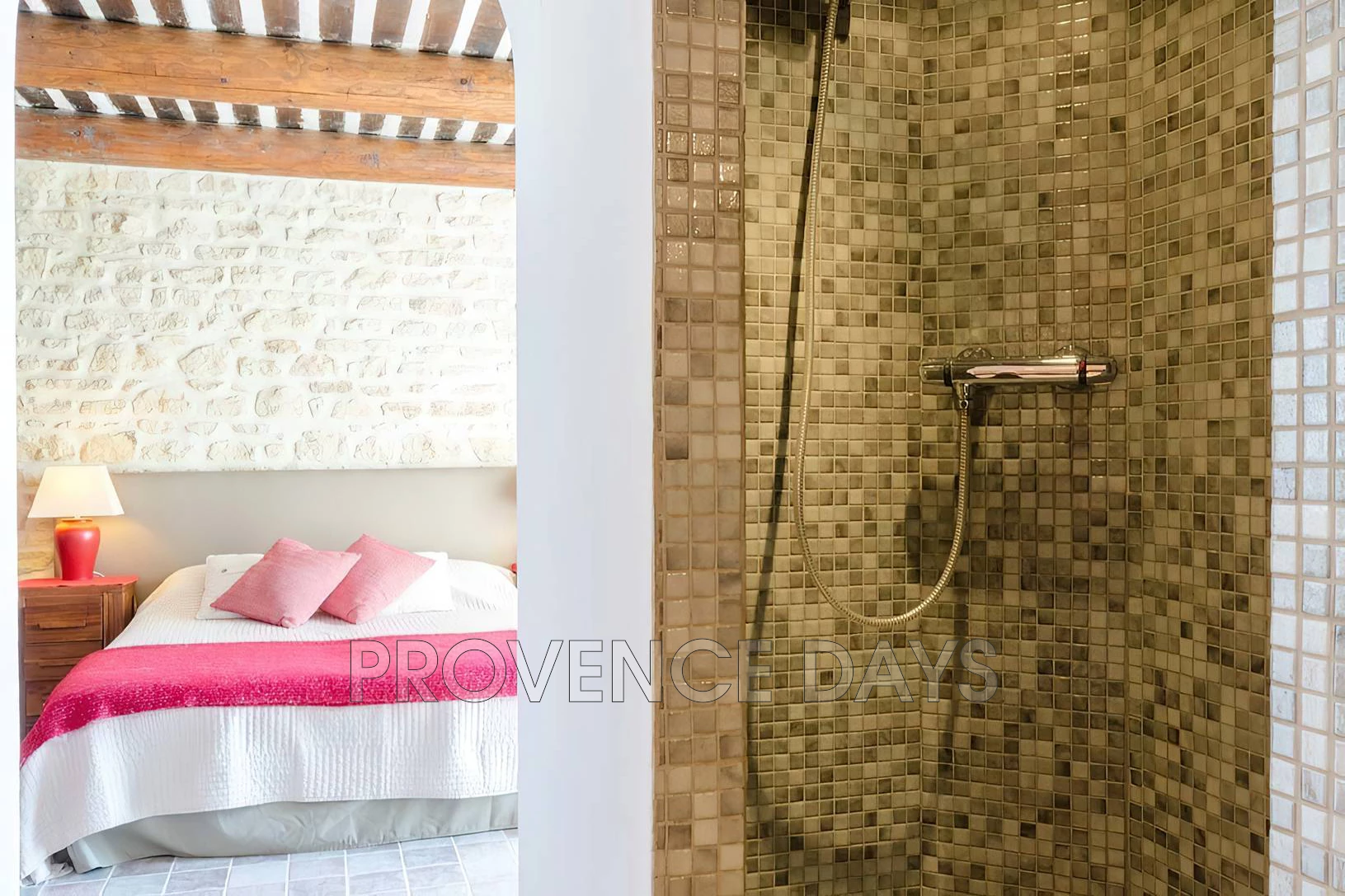 • Bedroom 1: This room has a double aspect with views over the Luberon and garden, and is air-conditioned. The bed is 1.8m/6ft-wide. The en suite bathroom has bath with overhead shower, double basins and WC.
