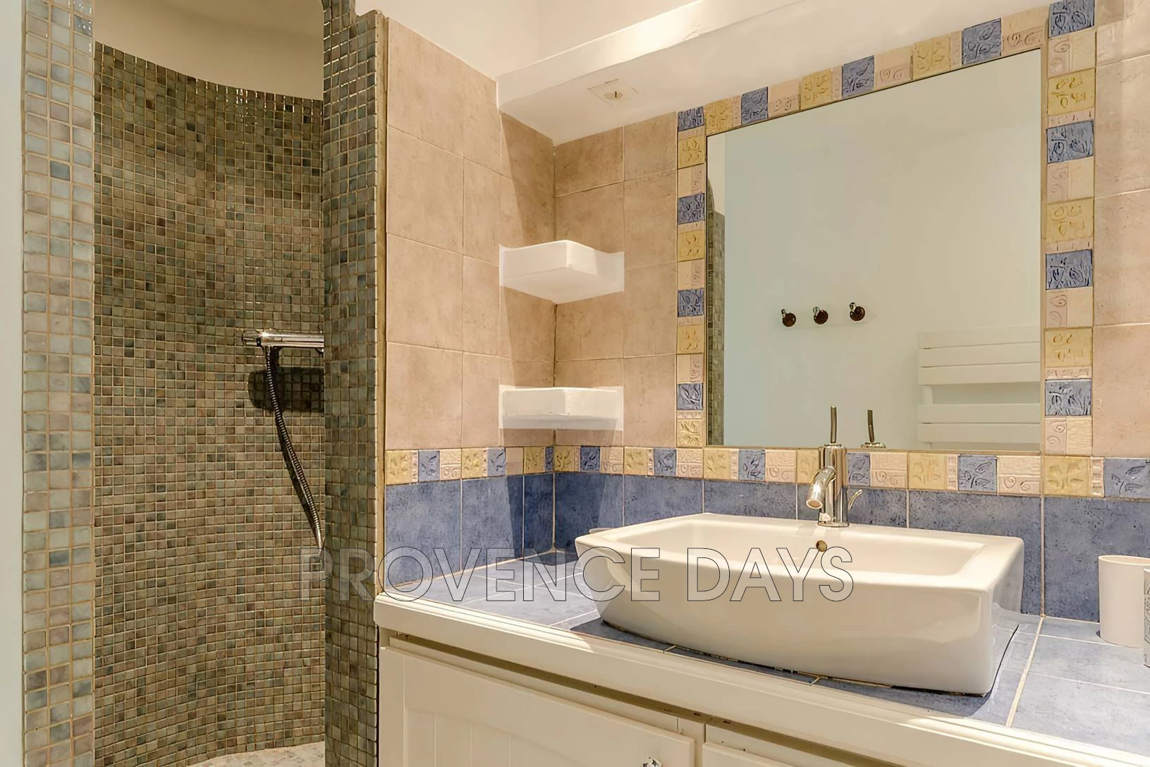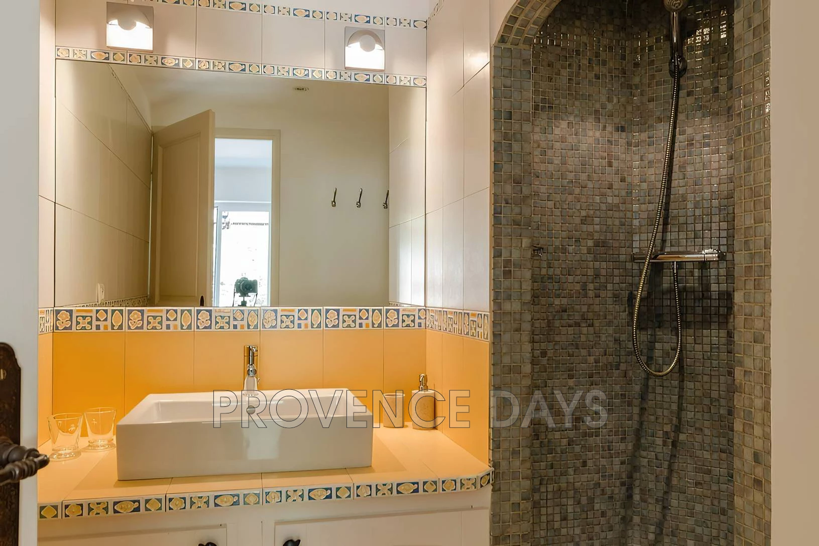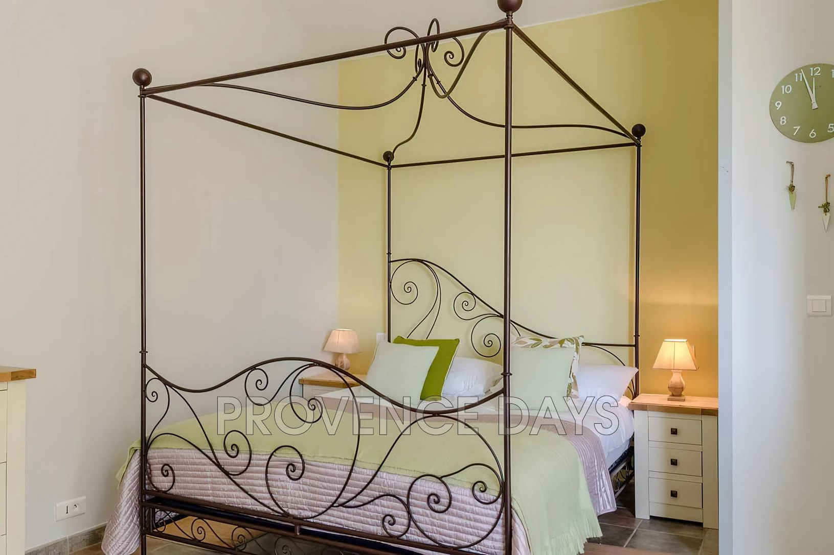 • Bedroom 9: Large air-conditioned suite with sofa-bed for 2 children, TV, kitchenette, and a 1.6m/5.25ft-wide double bed. This suite is upstairs and has a great Luberon view and its own loggia with table and chairs. The bathroom has bath, walk-in shower, basin and separate WC.