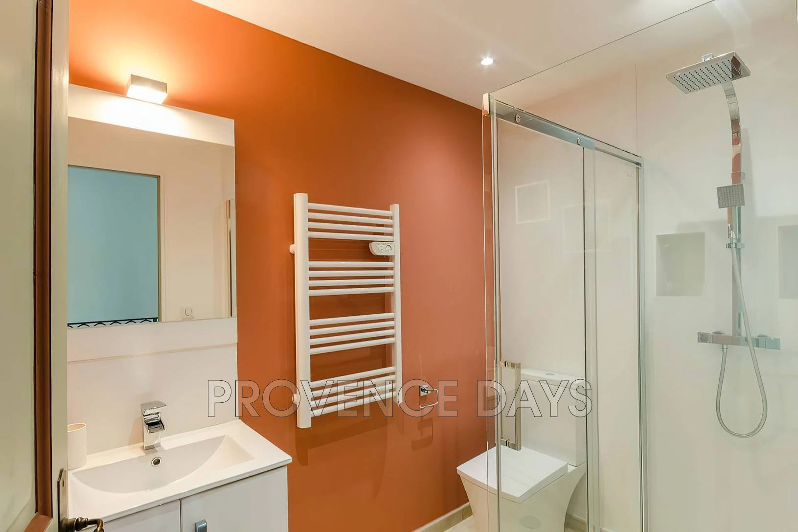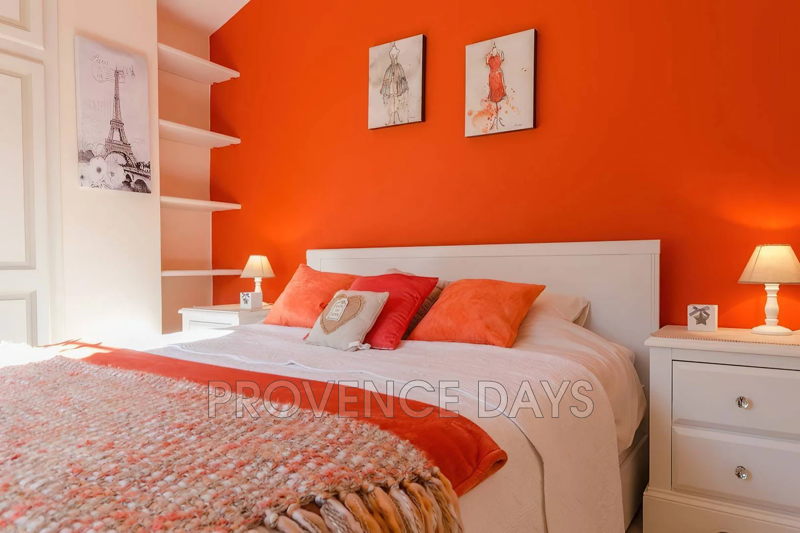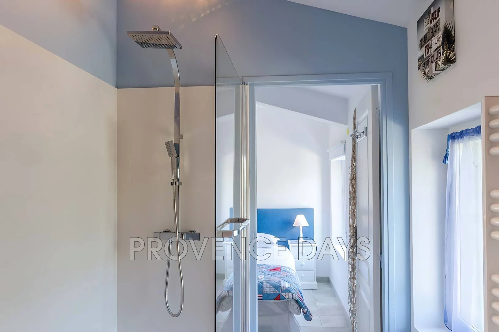 • Bedroom 9: Large air-conditioned suite with sofa-bed for 2 children, TV, kitchenette, and a 1.6m/5.25ft-wide double bed. This suite is upstairs and has a great Luberon view and its own loggia with table and chairs. The bathroom has bath, walk-in shower, basin and separate WC.