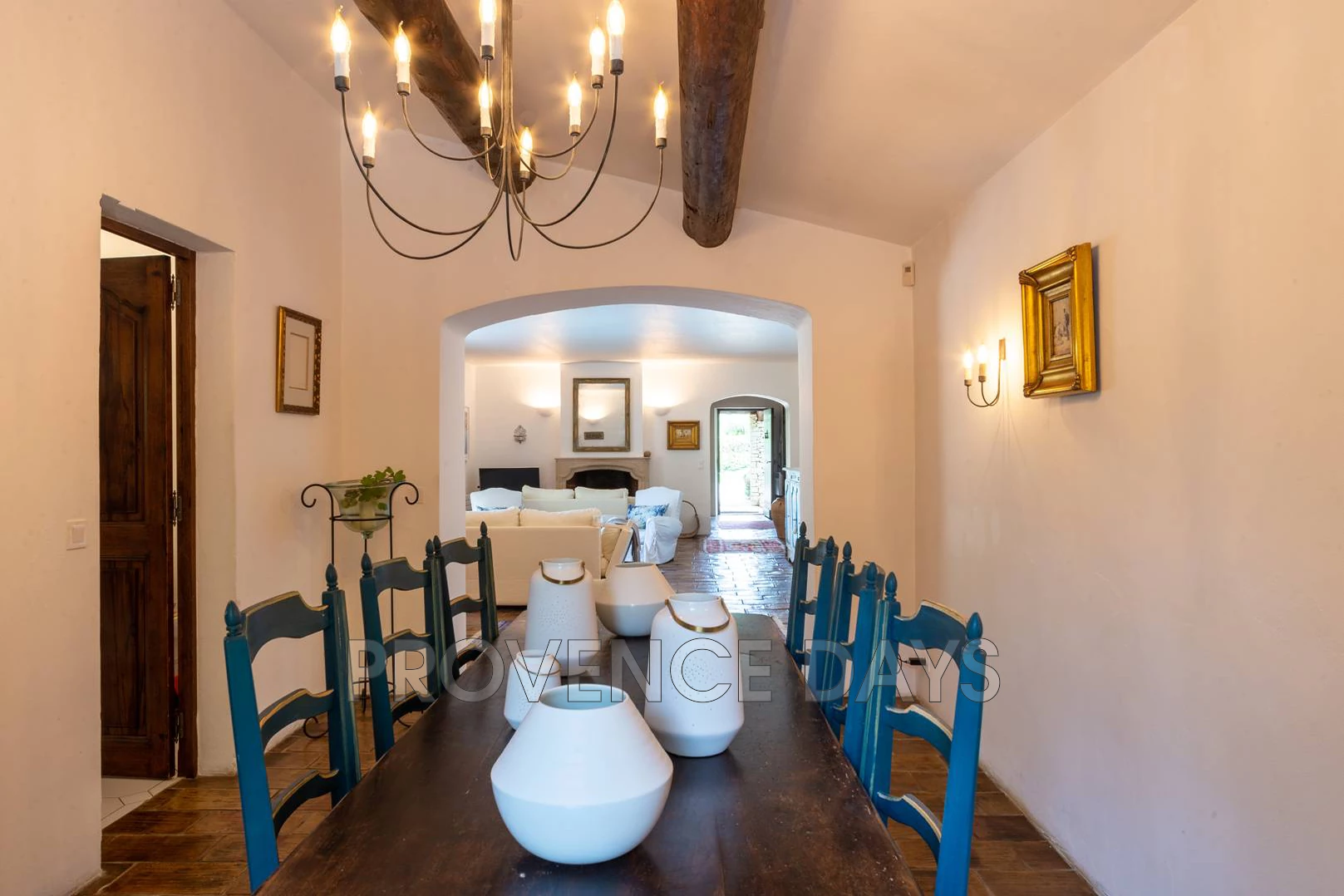 Upon entering the house you have a view from the hallway all the through the Salon and on to the dining room at the other end of the house.