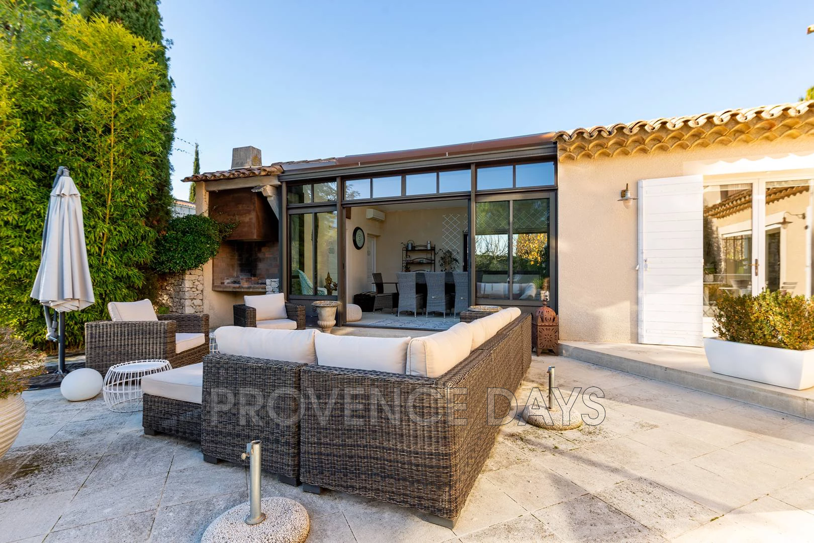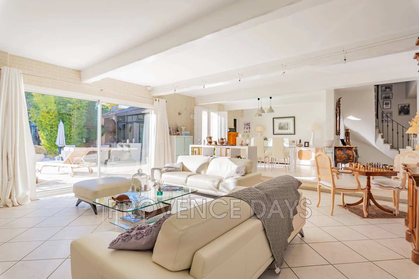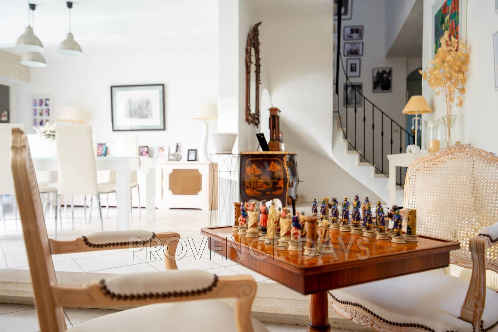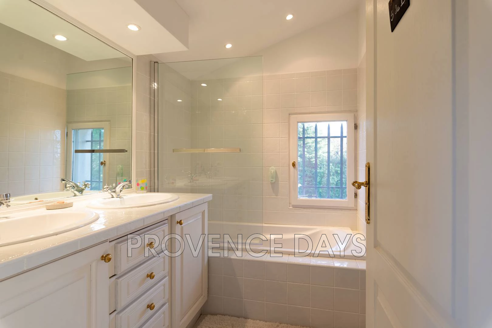 Through a doorway from the dining area is the well equipped kitchen with all you need to cater for Provencal styled dinners and alfresco lunches on the terrace accessed from the kitchen. The kitchen has a breakfast bar and integrated table. You will find an electric oven, microwave and induction hob for cooking. A dishwasher and for coffee a choice of Nespresso, Dolce Gusto or classic filter machine.