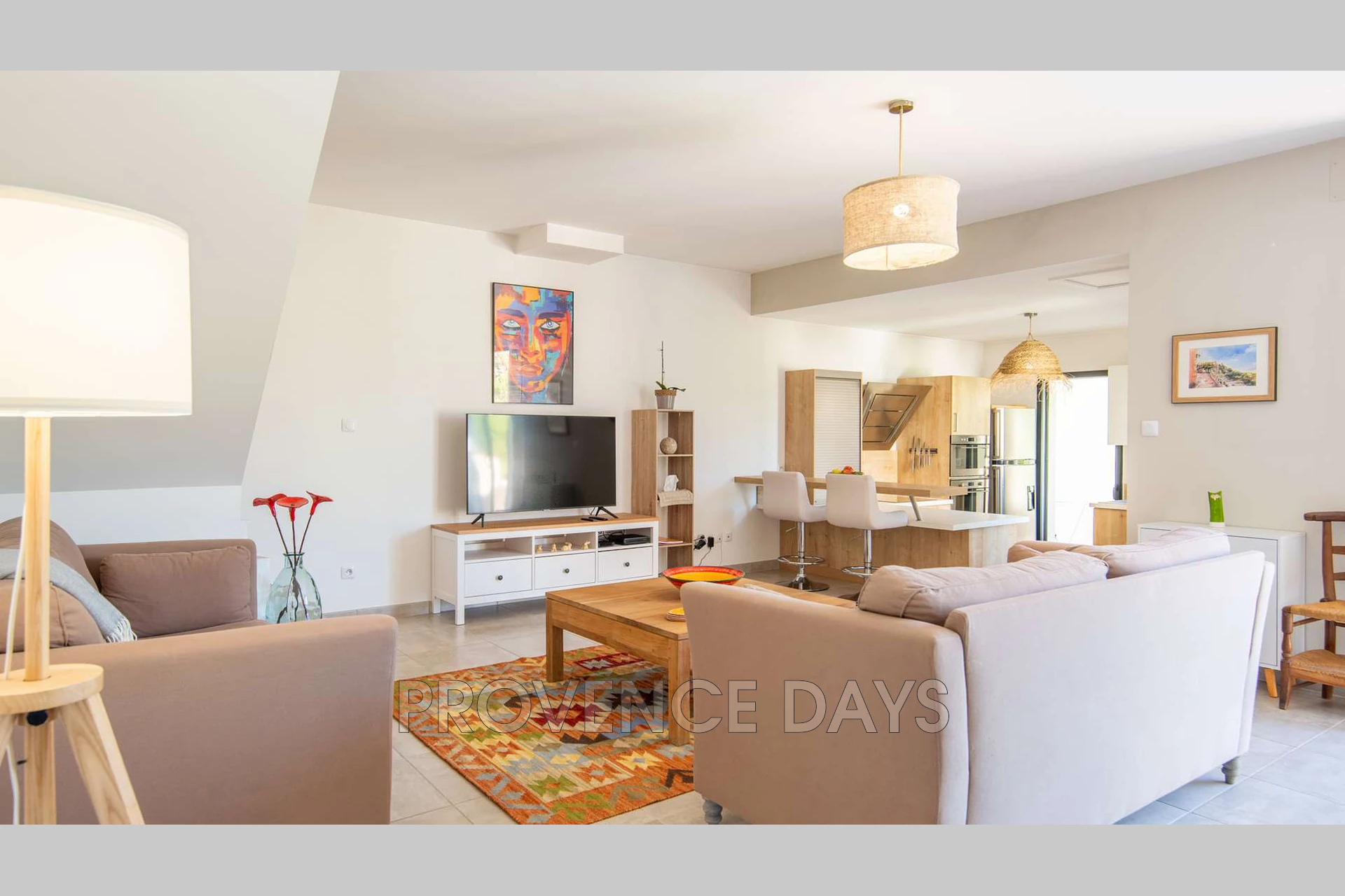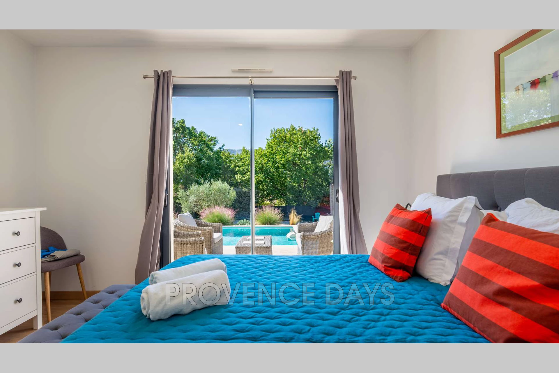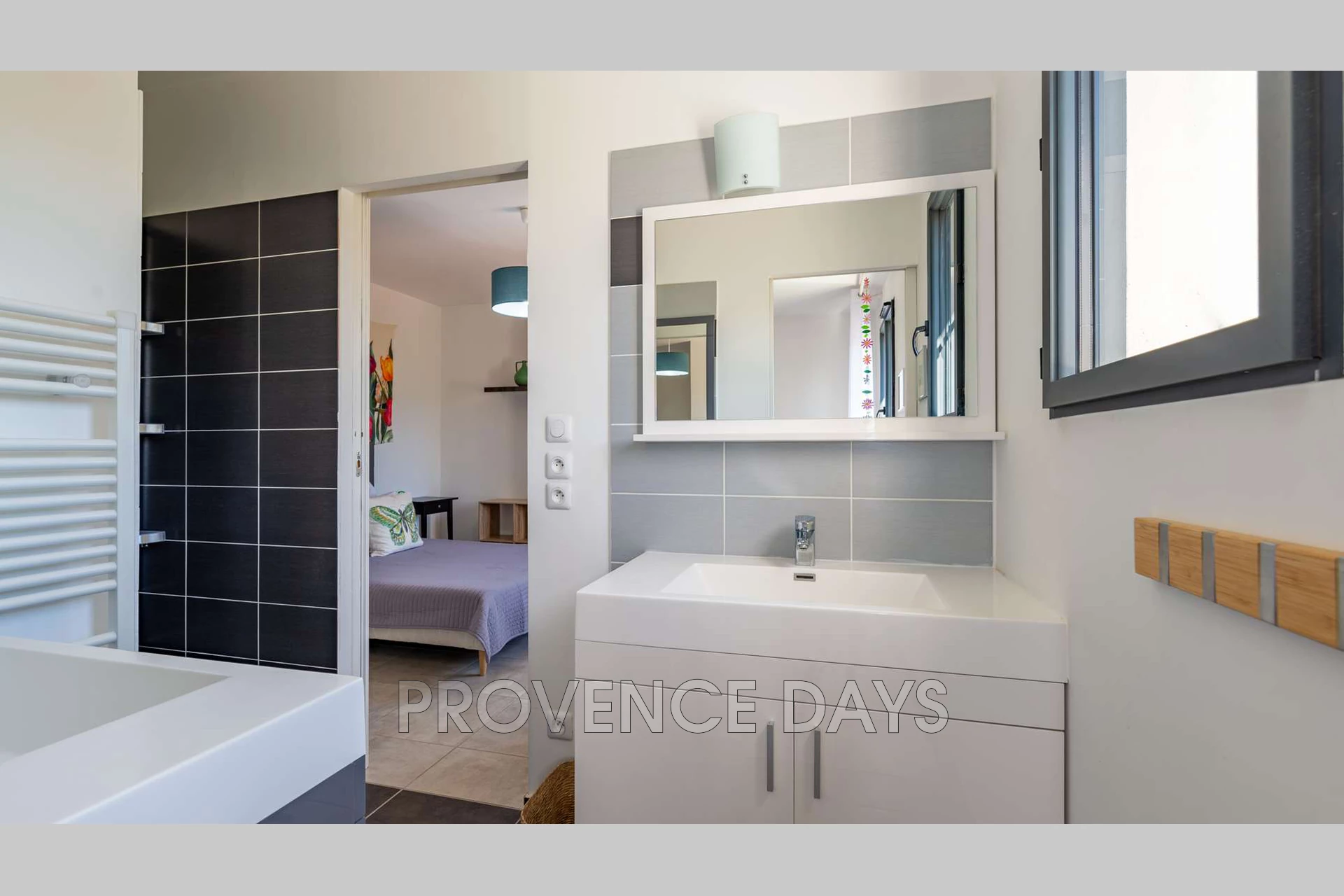 However the star of the show are the large floor to ceiling sliding doors opening out onto the pool deck and garden with views to the Luberon hills