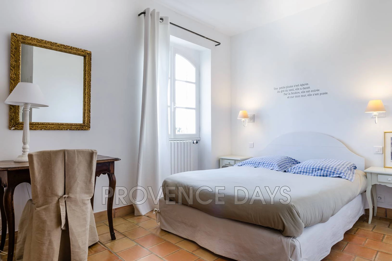With a 1.4m/4.6ft double bed, writing table and Luberon view to the south.