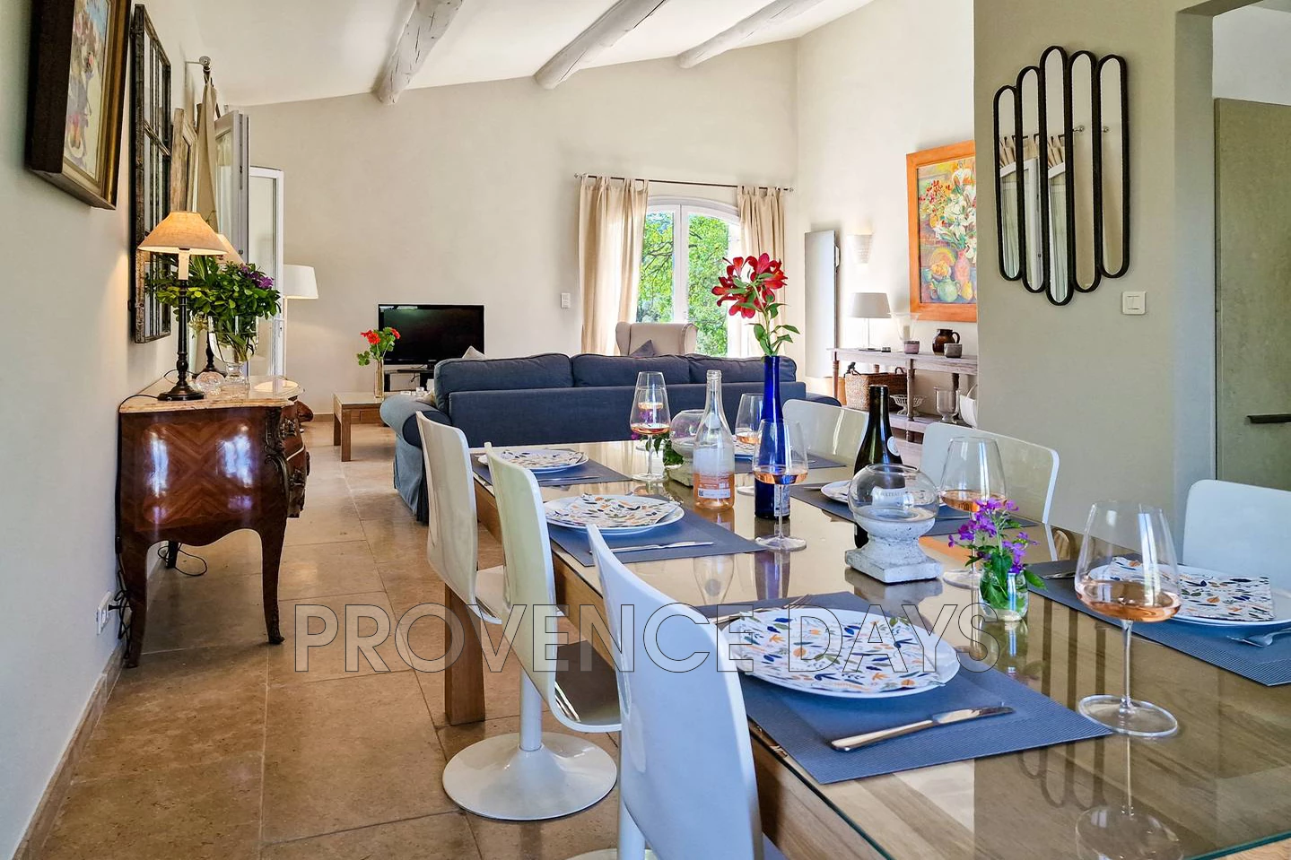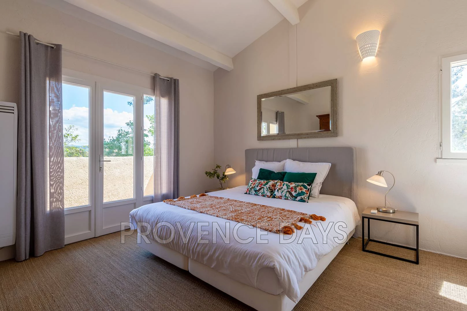 The house sleeps up to 8 in 4 bedrooms, 1 being a mezzanine to the 3rd bedroom. There is 1 bedroom on the lower flower and the others on the 1st floor. All bedrooms benefit from airconditioning.