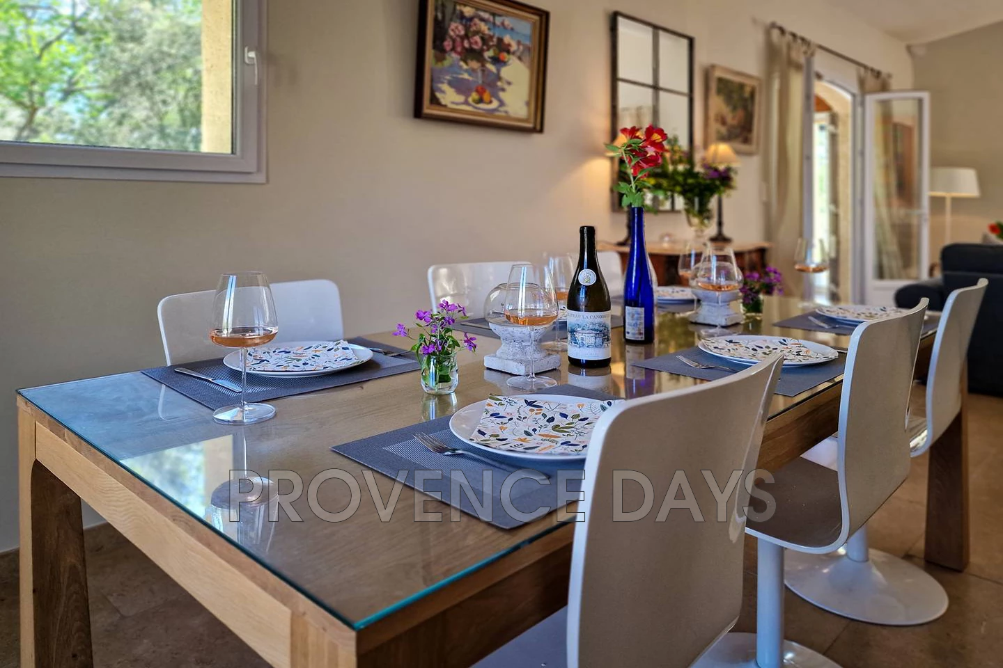You are spoilt for choice for dining and relaxing areas around the house and grounds. However on one side of the house near the kitchen is the largest dining terrace with space for 8 or more, a BBQ area and a view to the other side of the hill toward Cabrieres village and the surrounding countryside. -