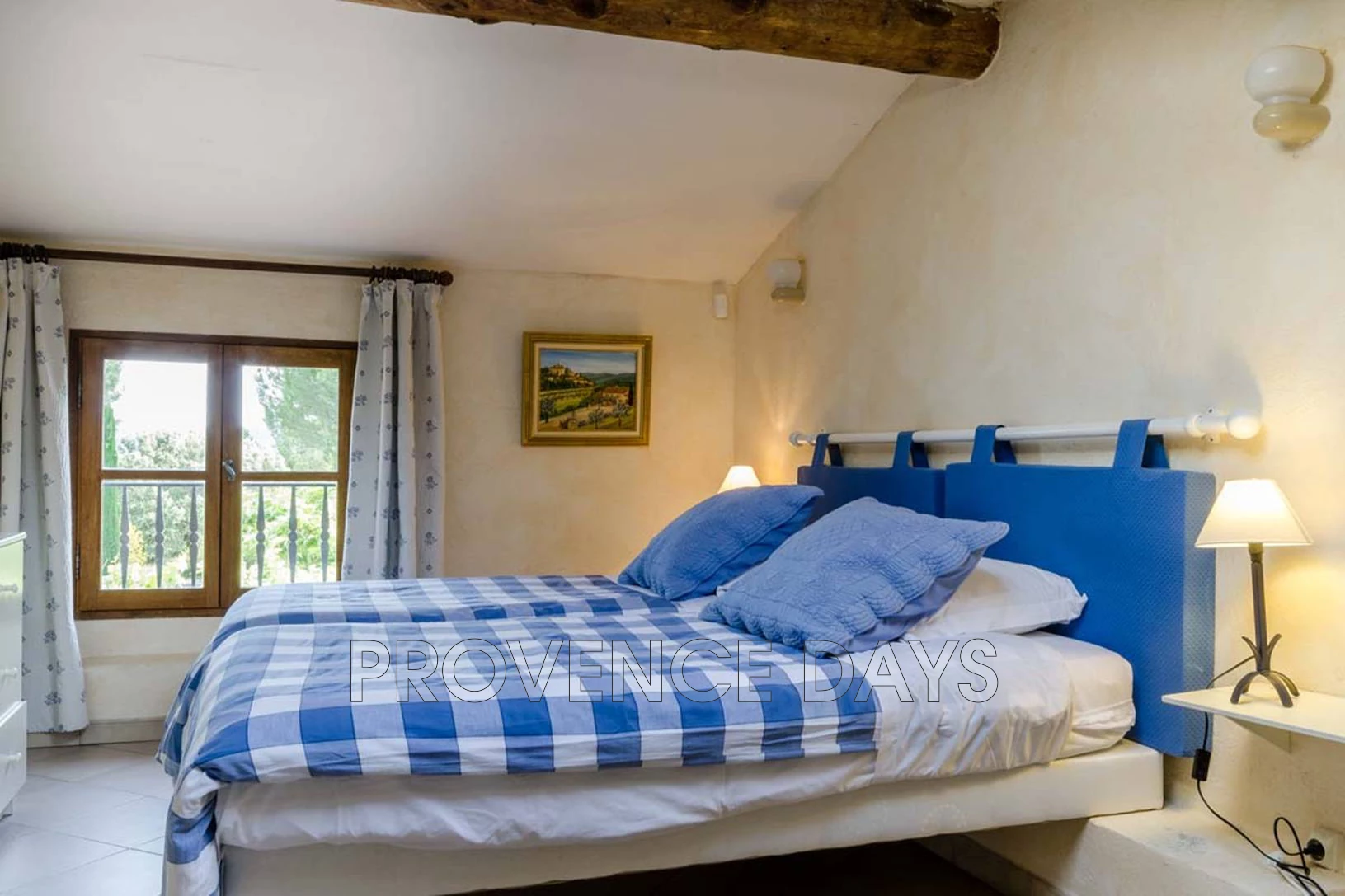 Bedroom 3: Upstairs and air conditioned, with a 1.6m/5ft-wide double bed, and a view over the vineyards to Ansouis.