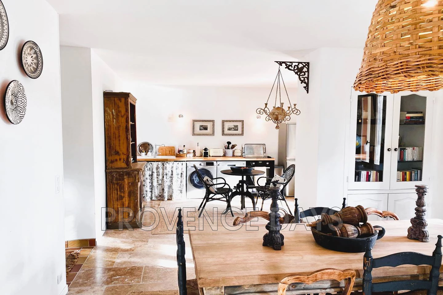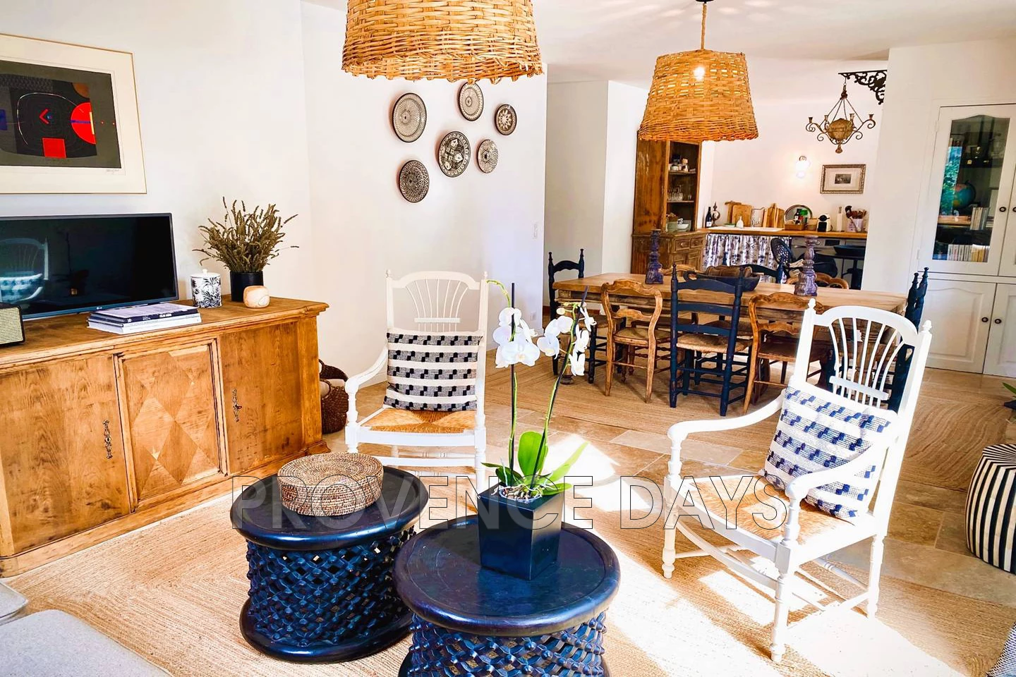 The 4 bedroom house has a garden that wraps around the house with several terraces most notably the large dining terrace at the rear that leads to the pool and its shading oak trees.