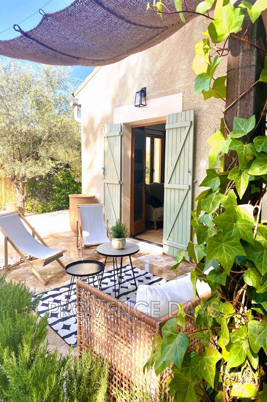 The garden at Maison du petit bois is ideal for relaxing and entertaining in. The terrace leading accessed from the kitchen or living room provide comfortable seating at one end and a dining table with seating for 8 at the other. A shading awning overhead helps to keep the area cool, and for the ultimate refreshment, there is the inviting pool.