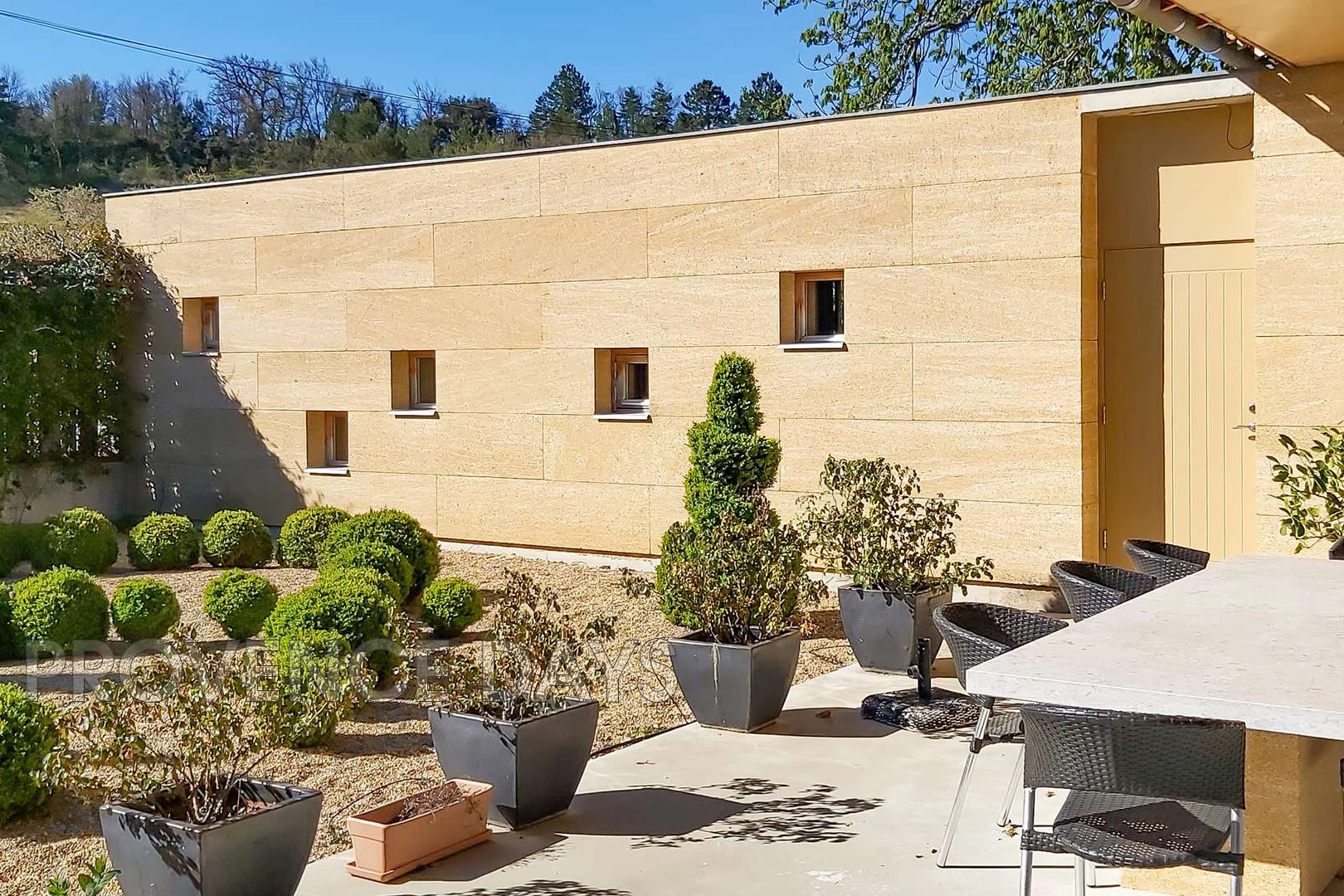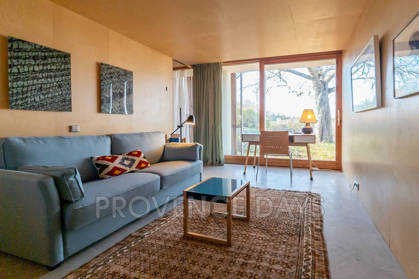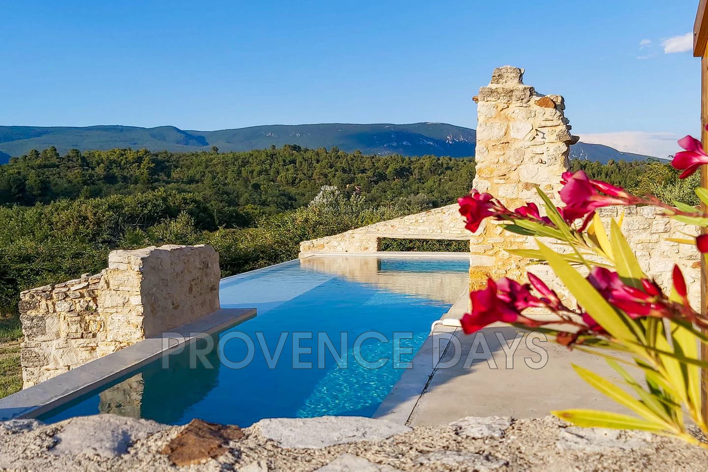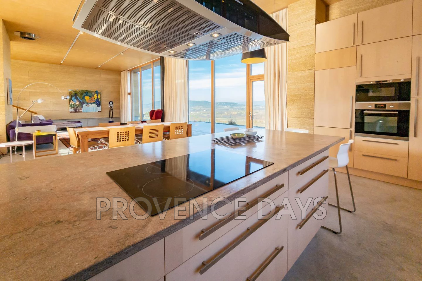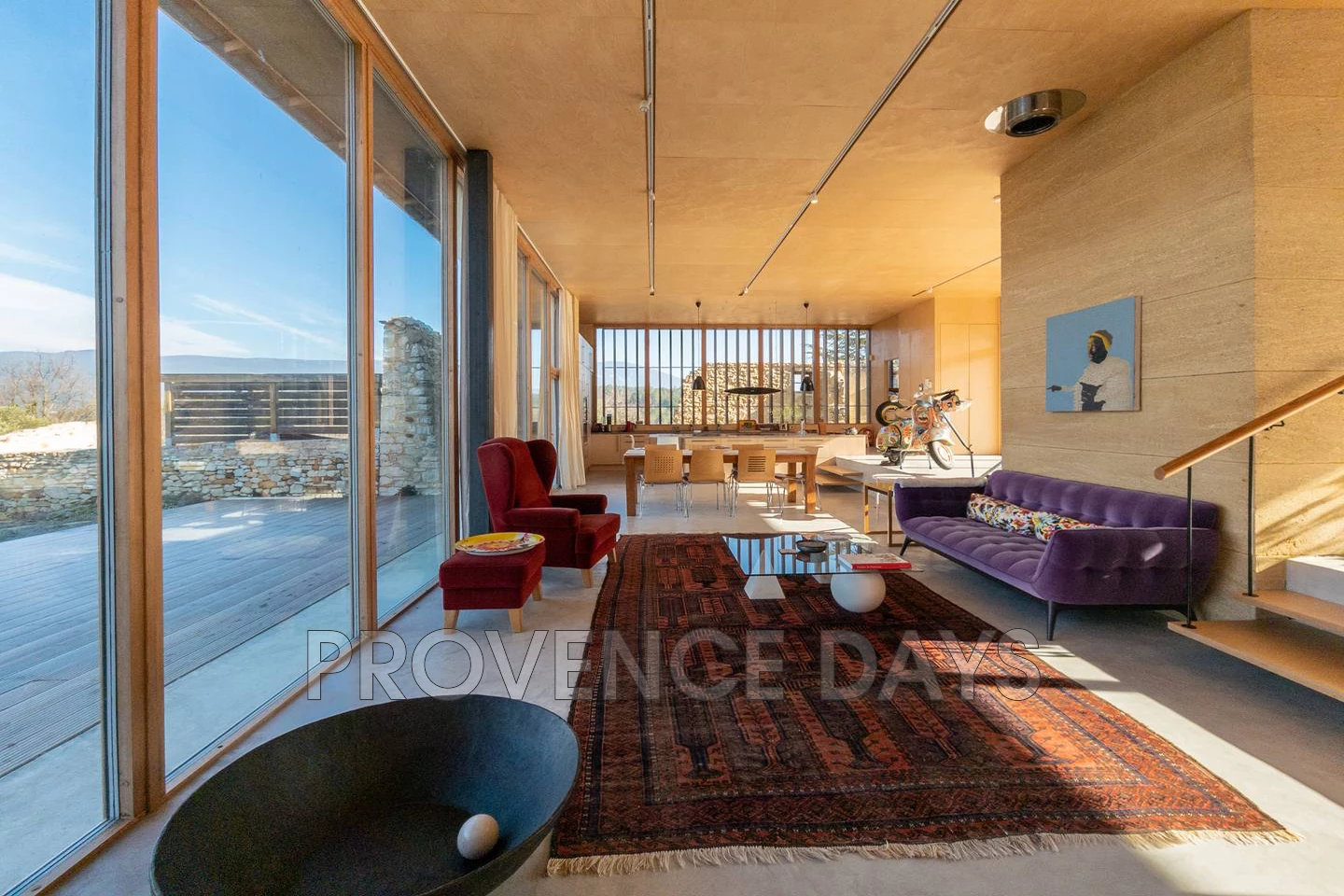 This is a beautifully styled open plan space with unusual arcithectual details. This modern interior has been cleverly crafted from the shell of a ruined farmhouse with stones from the region (pierres de gards) which it wears almost like a disguise so not to spoil the natural setting.