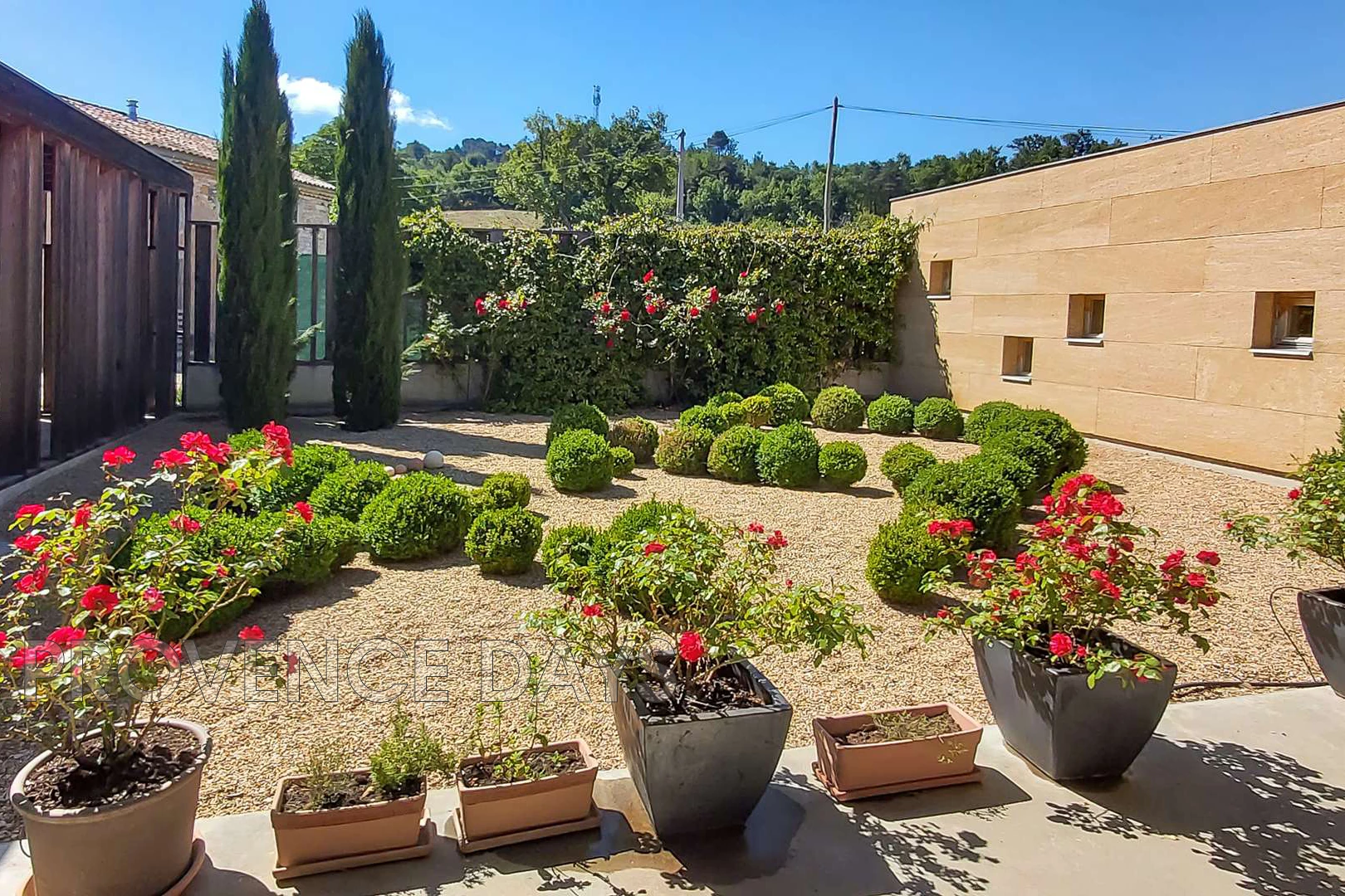 The garden wraps around the left side of the house and expands out to the rear with far reaching views across the countryside. The views from the hillside look down on the nearby village of Villars about 2 km away and the Vaucluse hills. From here you can take advantage of the many walking trails. There are plenty of good restaurants to choose from in the nearby villages and in Villars itself there are 2 restaurants, a bar and a bakery (serving stone-baked bread).
