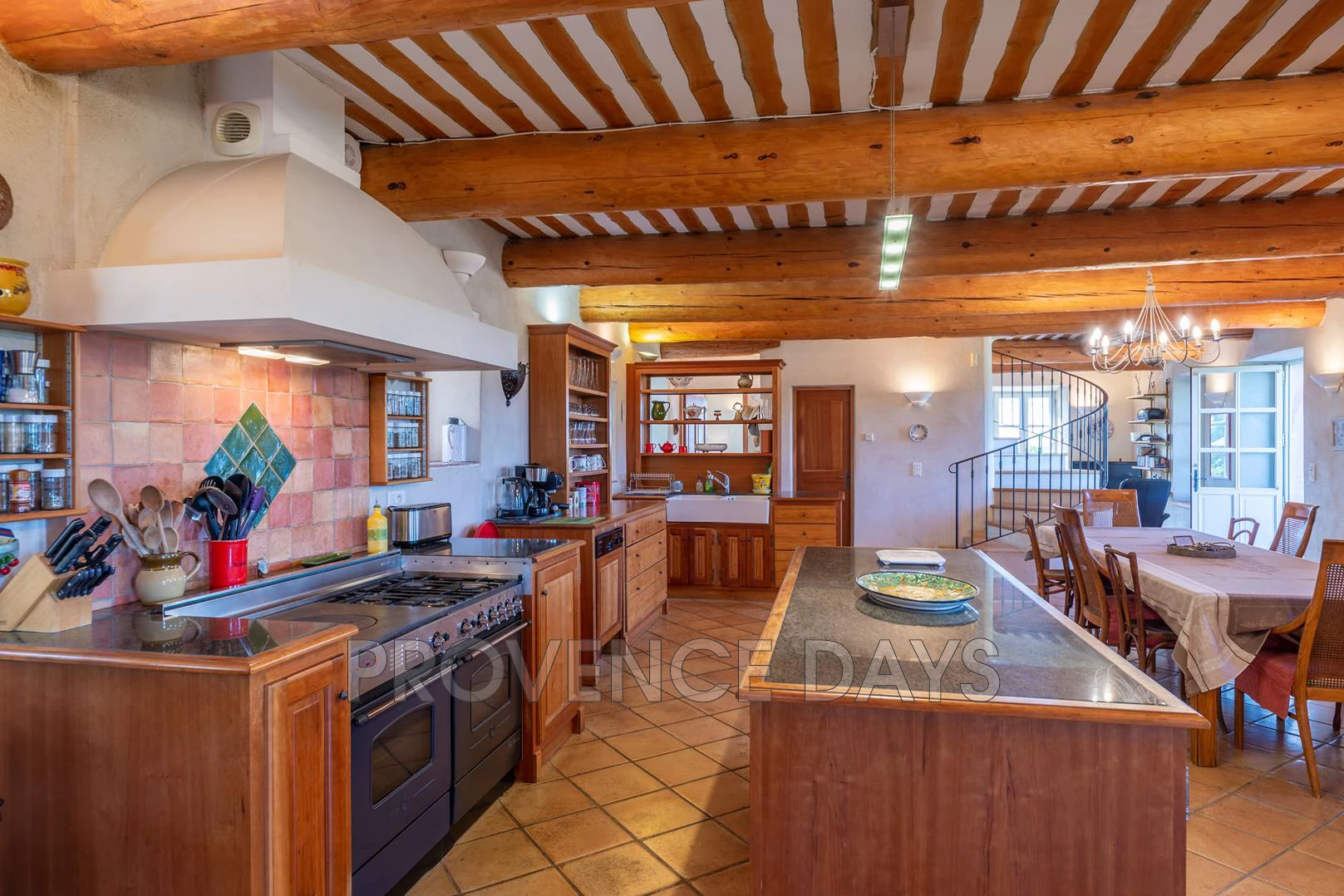 The layout of Mas d’Apt lends itself perfectly to family holidays. There is plenty of open plan space for everyone to get together, and plenty of smaller, cosy areas if you need a bit of peace and quiet. The ground floor is centred around a large, open plan living, dining and kitchen area.