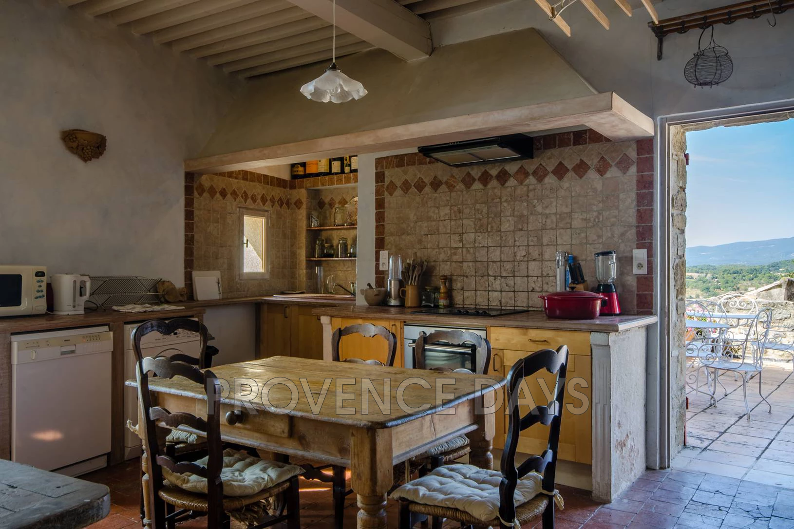 • Kitchen 2: On the 2nd floor up, this kitchen is Provencal in style, and opens out to the top terrace. The kitchen has 4-ring cooker, oven, microwave, dishwasher and washing machine.