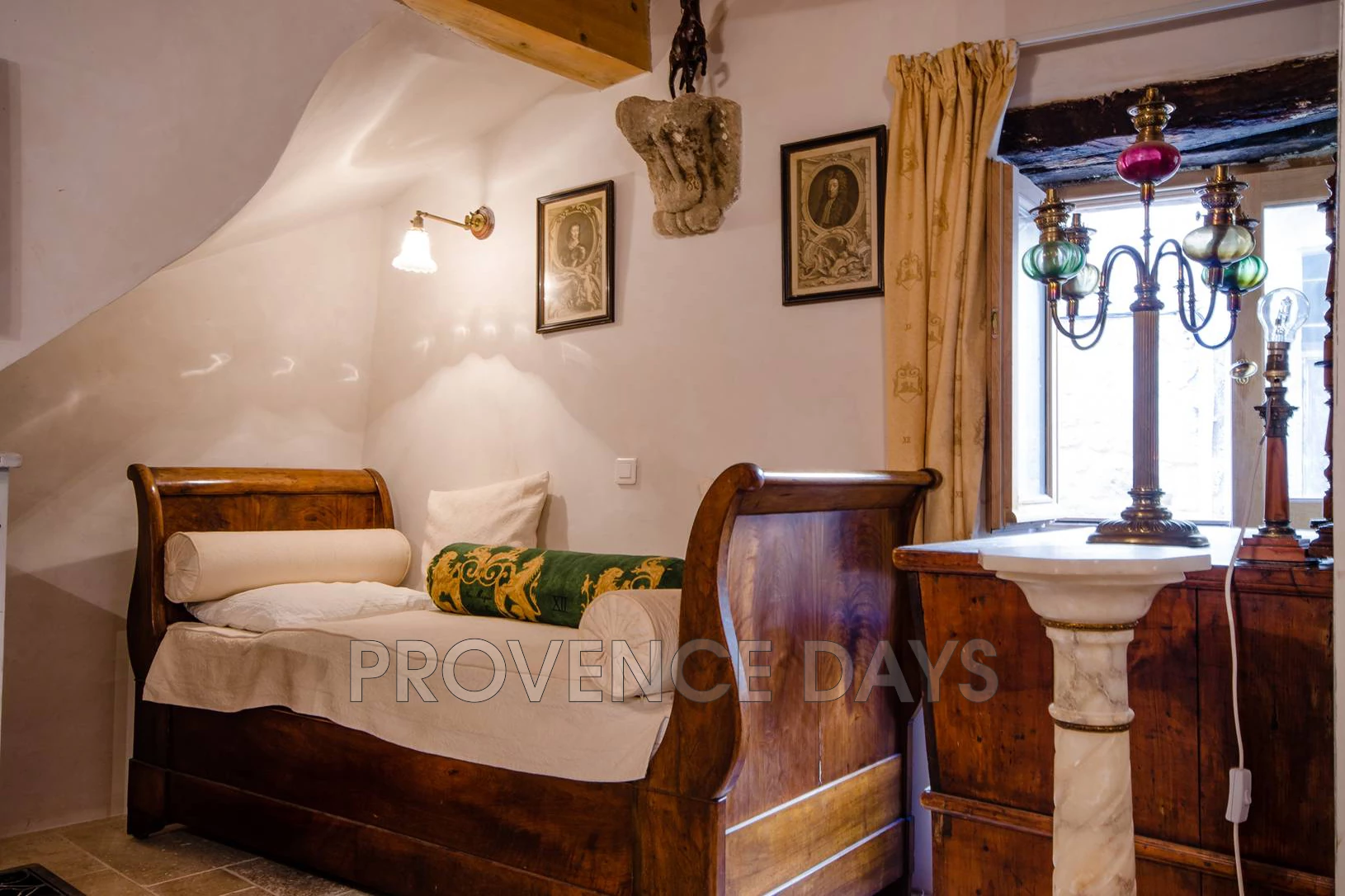 • Bedroom 2: On the top floor, this room has a 1.6m/5.25ft-wide double and for decoration a 17th-century copper bath.