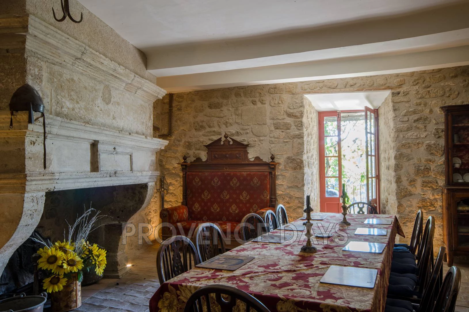 • Dining room: A room to bring the medieval to life, With a vast fireplace, a vaulted stone ceiling, and a grand dining table. The dining room connects to the kitchen and balcony.