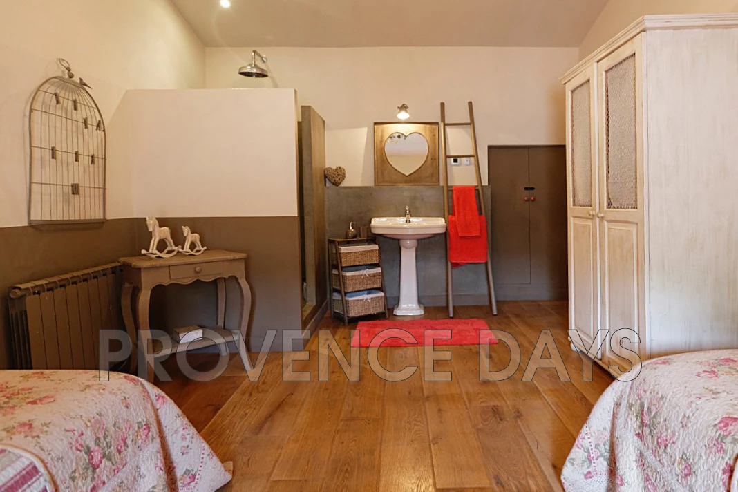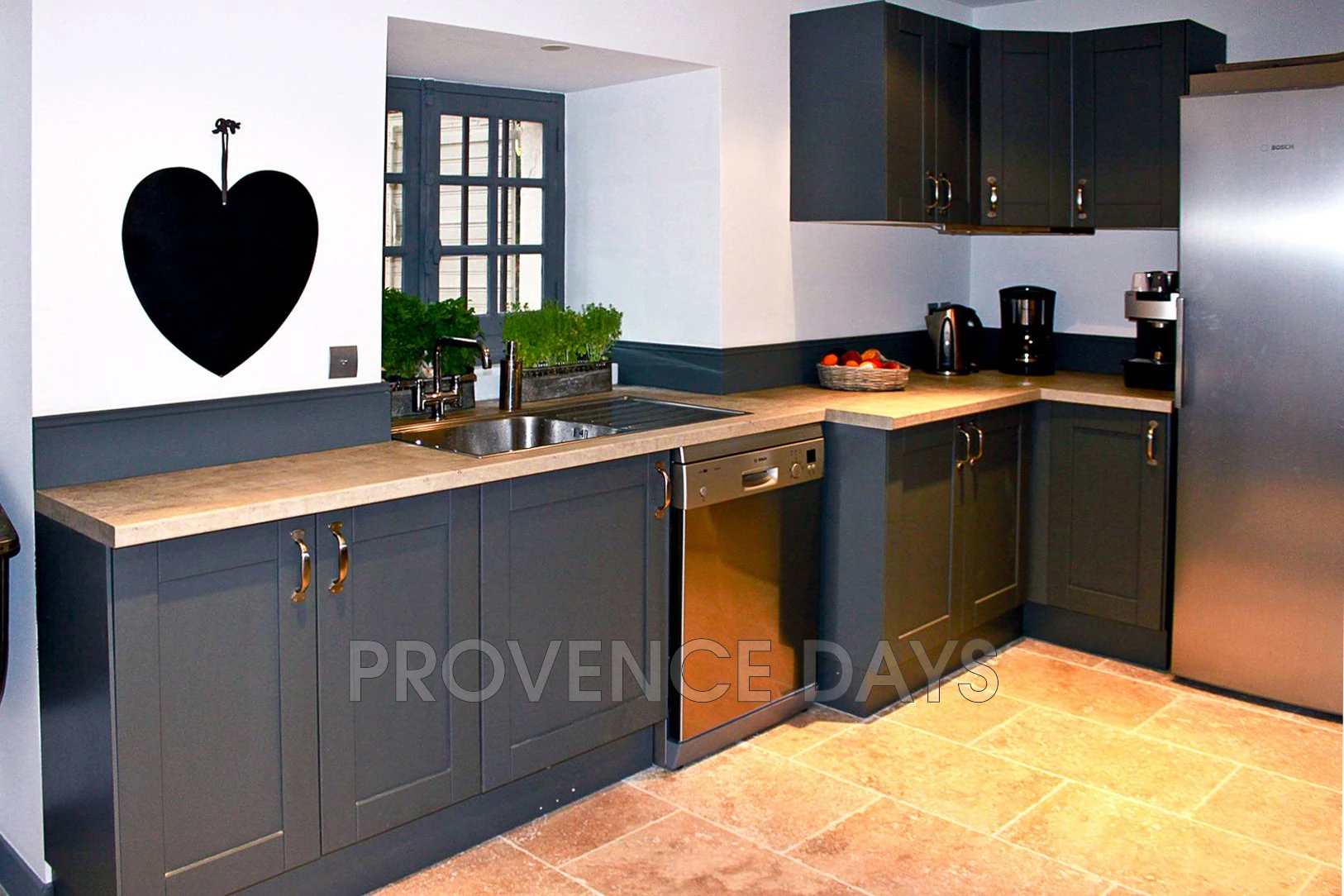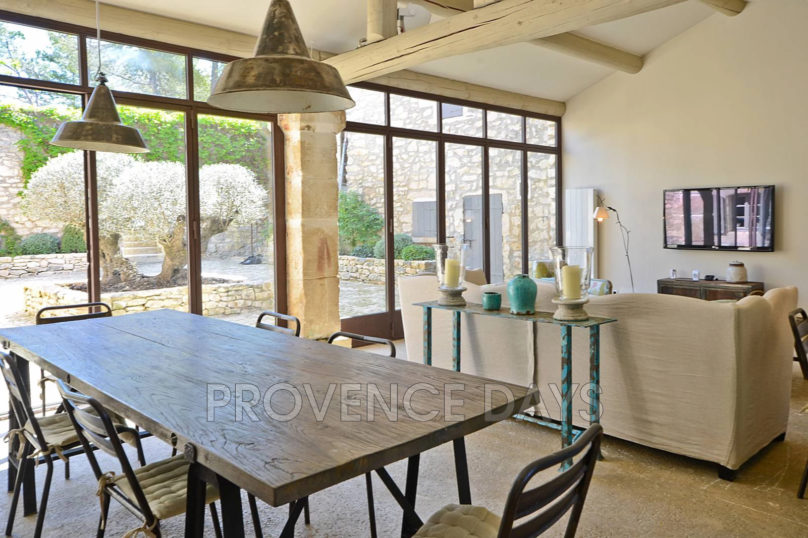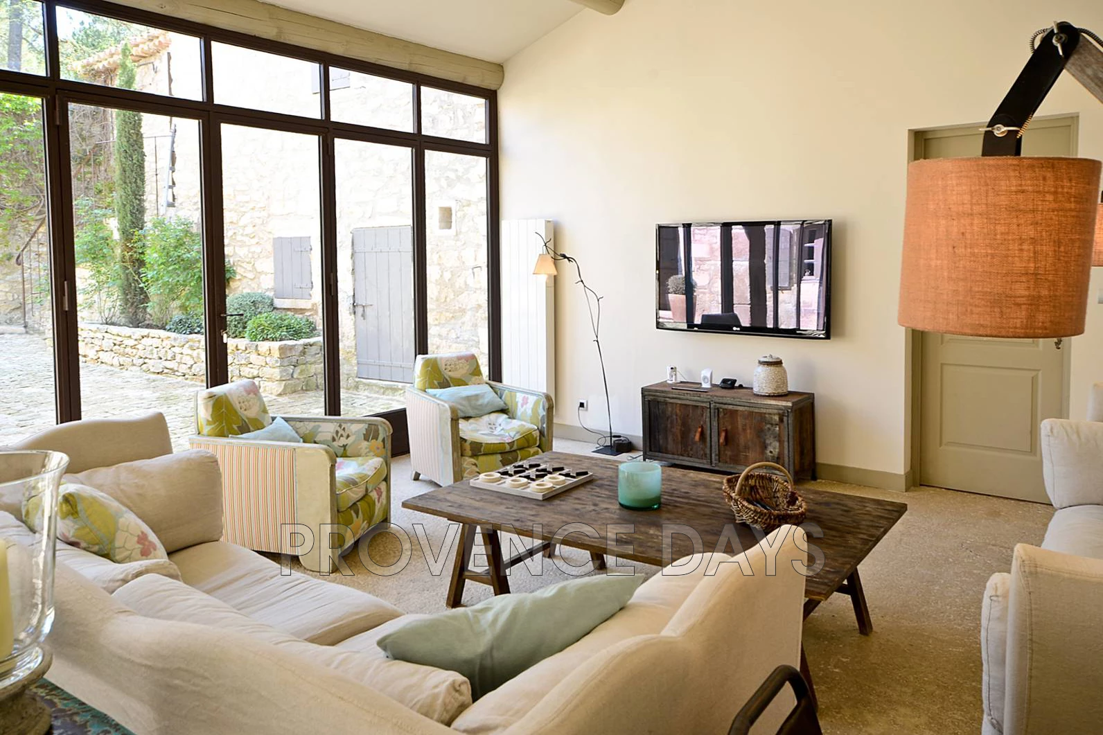 An interior-designed, 18th-century farmhouse, converted into a luxury rental home for up to 10 people. The house is in Luberon countryside between the gorgeous perched villages of Menerbes and Lacoste. If the style is Provencal, the comforts and furnishings are modern, as is the heated pool.