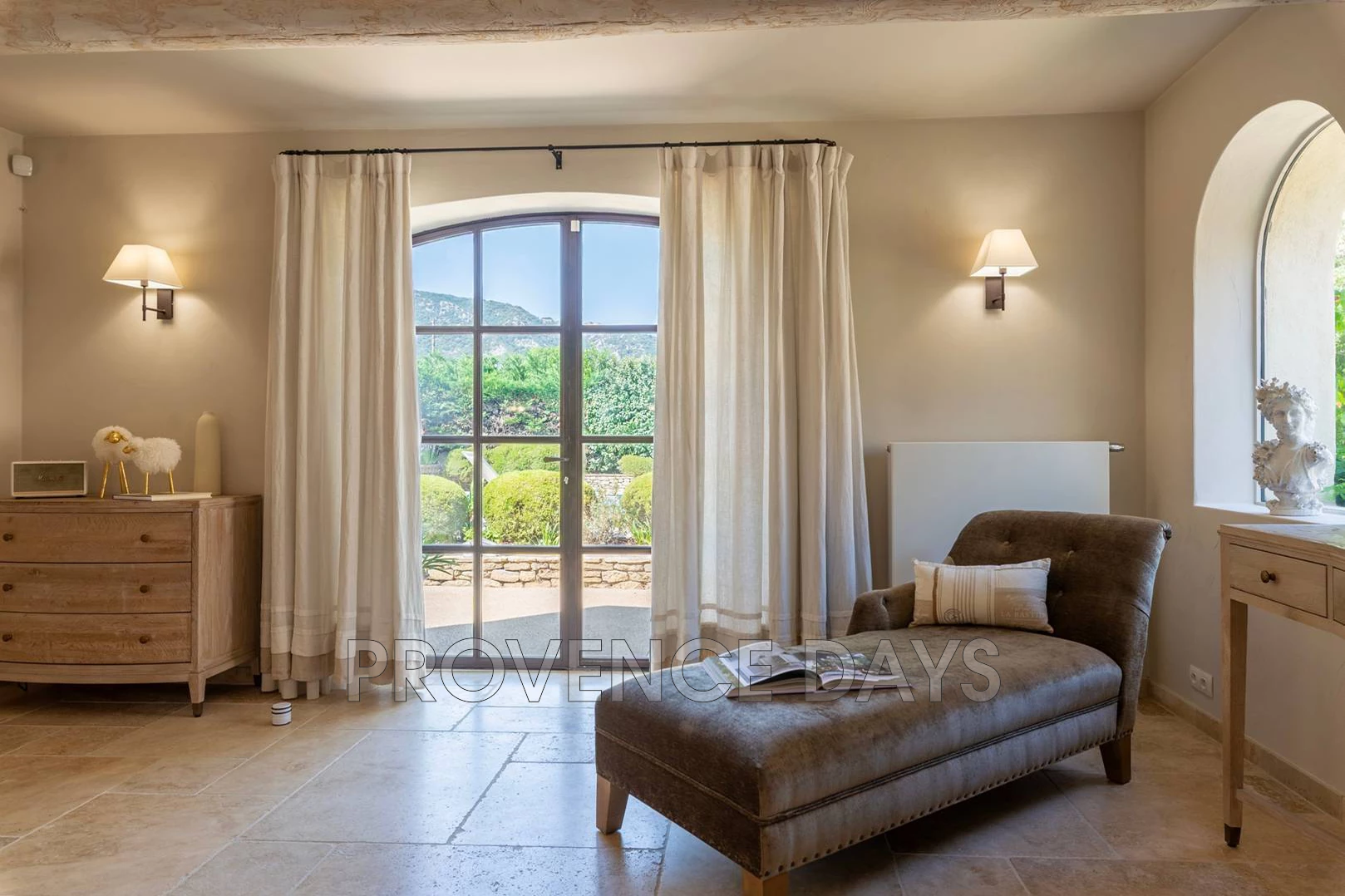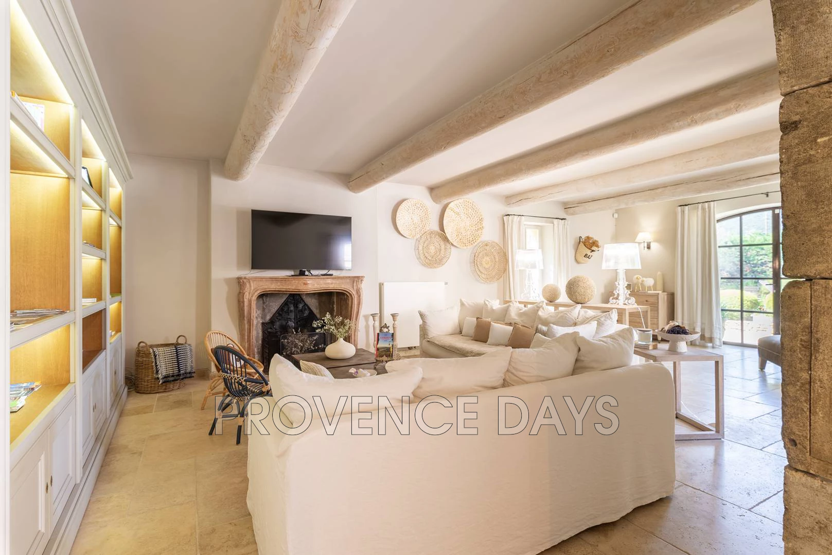 • Grand salon: This is the ultimate relaxing/entertaining space, it runs from the front to the rear of the house and has views on 3 sides to the garden and pool. Furnished with plush sofas for relaxing and a welcoming workspace with a desk and chair .