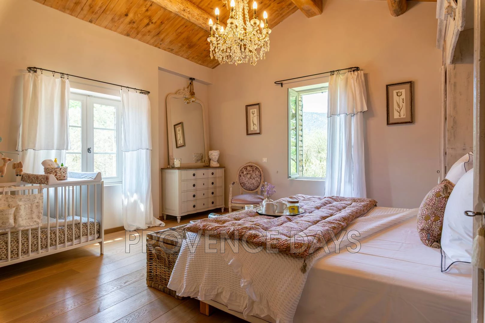 • Master Bedroom: Double room with high ceilings that has views to the garden and Luberon hills with a 1.8m wide bed (can be made into singles). Air -conditioning
