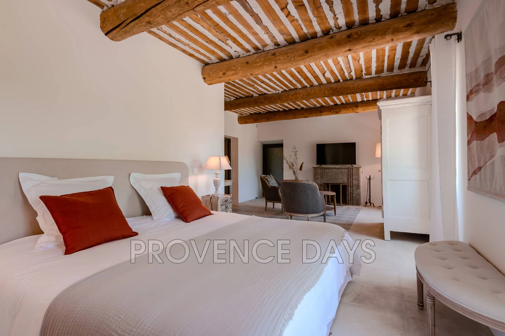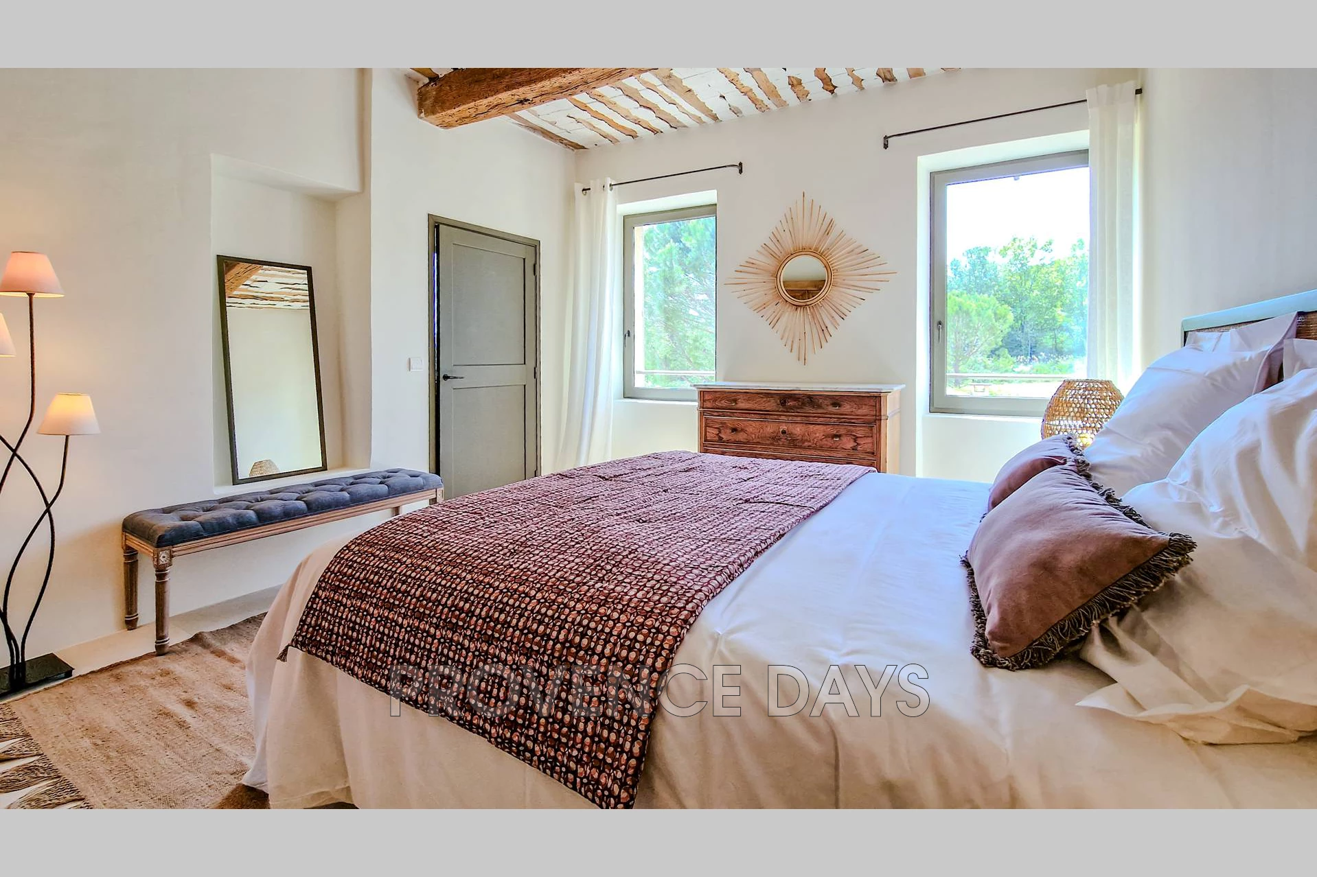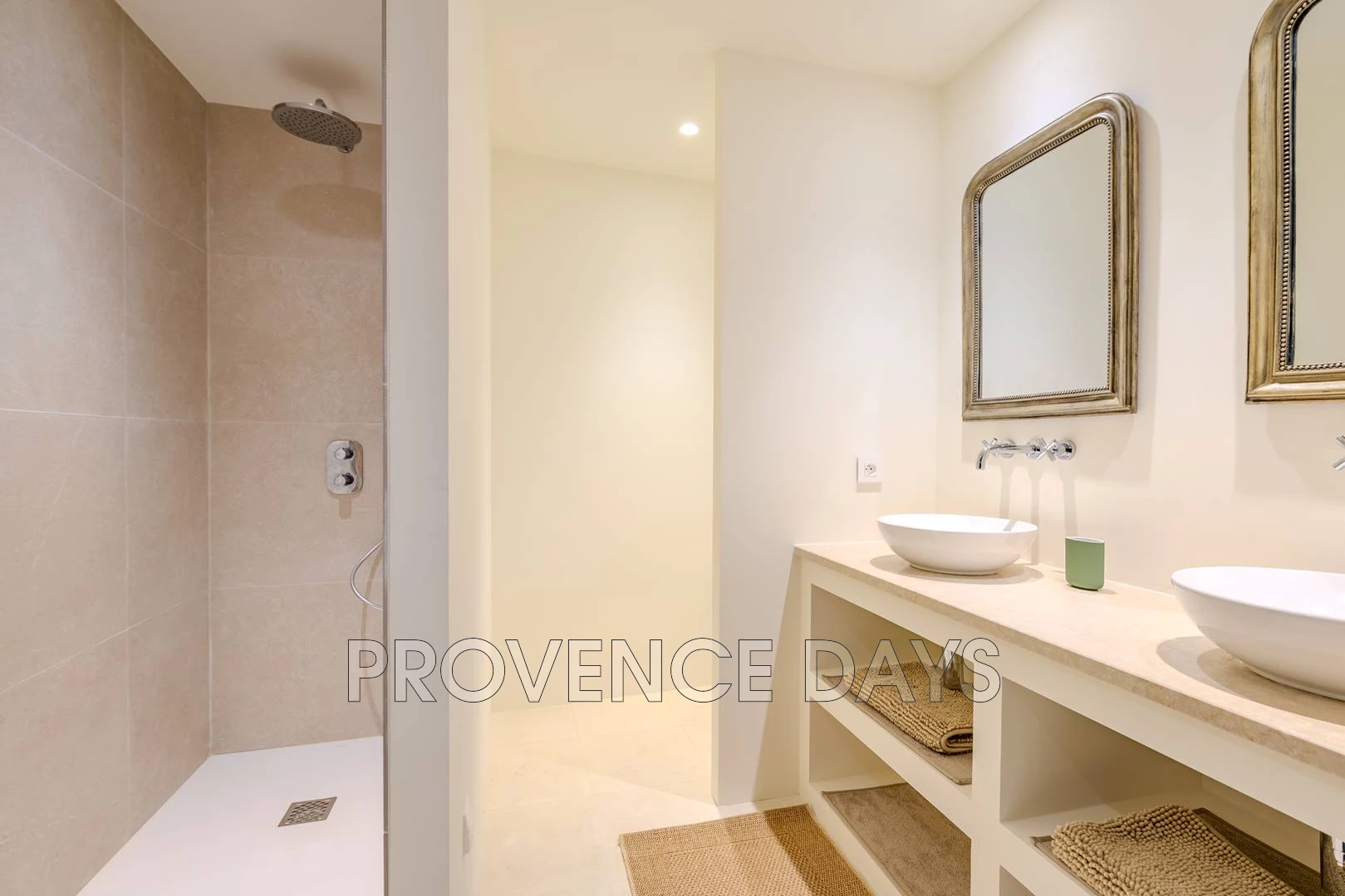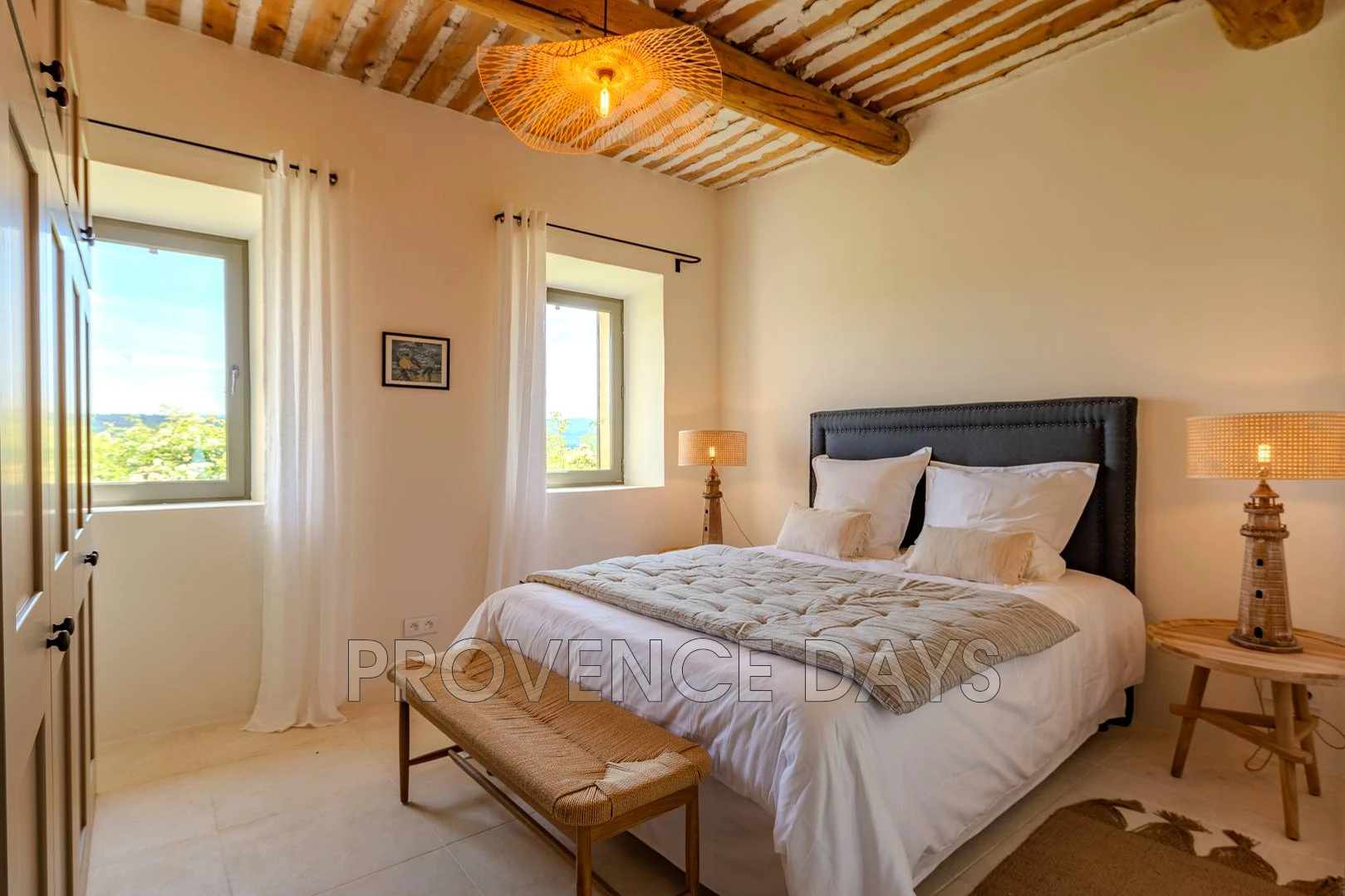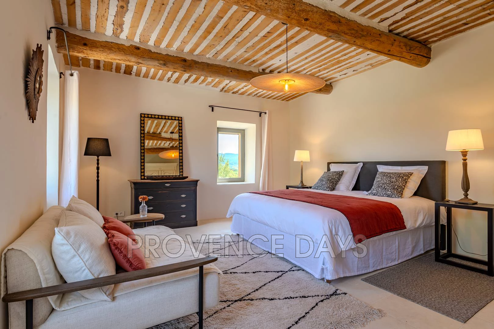 • Bedroom 1 : This room has a view of the courtyard and garden. It has a 180 cm king-sized double bed and ensuite bathroom with shower, double sinks and w.c.